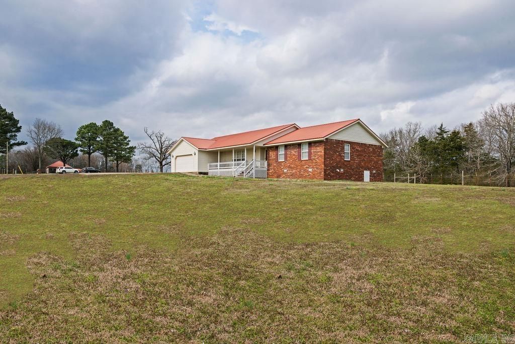One-owner home located on 1.13 acres just outside of Clinton offering beautiful countryside and mountain views. Conveniently located just minutes from Greers Ferry Lake. Built in 1997, this 3 bedroom, 2 bath home features approximately 2,018 sq ft all on one level with a comfortable layout. The spacious living room includes a fireplace and plenty of natural light. The kitchen offers ample cabinet storage, generous counter space, and a center island for additional prep space, along with built-in appliances including an electric range, dishwasher, and microwave. A dining area and separate formal dining room provide plenty of room for everyday meals or entertaining. Covered front porch overlooking rolling hills and pasture views. The property also includes a two-car garage, paved driveway, and a barn/storage building for additional space. Conveniently located just minutes from town while still offering the quiet feel of country living with acreage and scenic views.