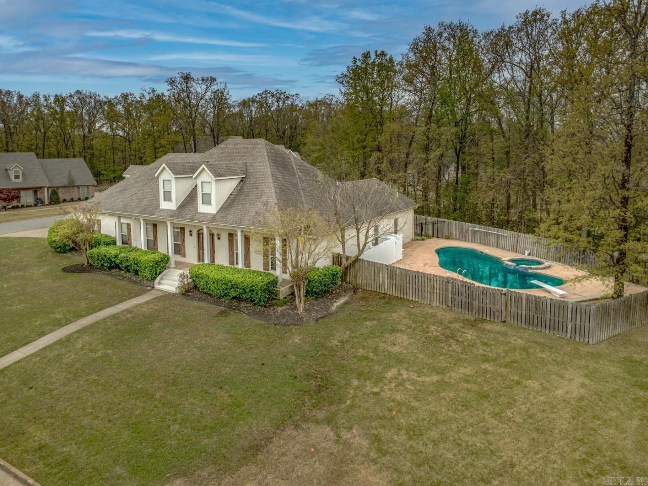 Welcome to 4405 Wood Crest Drive in Lake Crest Estates - Jonesboro, Arkansas. Located in the Valley View School District, this 4-bed, 3.5-bath home offers over 3,800 sq. ft. of living space with classic brick colonial style. The main-level primary suite includes a sitting area, large closets (his and hers), a spacious bath with whirlpool tub, and walk-in shower. The master suite is separate from the three other bedrooms on the same level. The kitchen features freshly painted cabinets and ample cabinet space. An island with an extra sink makes this kitchen a stand out! With an eat-in breakfast bar, the heart of the home opens to multiple living areas, including a formal dining room, great room, and office.Upstairs is a perfect area for office, game room, or living area and has an extra room. Situated on a corner lot, the home offers added privacy and a lake view from the front porch. The backyard is a private escape that includes an in-ground pool, patio, and big screened porch with fireplace. Additional features include a two-car garage, golf cart garage, and extra parking pad. Sellers offering a $3,000 carpet allowance with reasonable offer. Schedule your showing today!