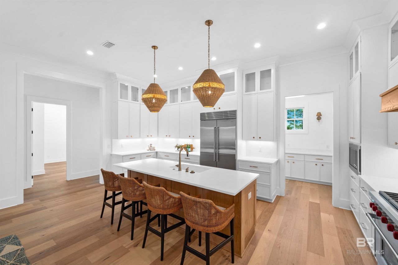 Stunning new construction by Pickering Building in sought after North Hills at Fairhope. Craftsman design villa home offering 11' ceilings all on main floor with open concept. Over-sized kitchen with center island bar with wolf/Sub-zero appliances, large walk-in scullery with sink and wine cooler, split bedrooms all with private baths and additional office study. Walk up floored storage over garage area, covered patio with brick pavers and outdoor fireplace. Loads of custom features throughout. Visit Northhillsatfairhope.com. Buyer to verify all information during due diligence.