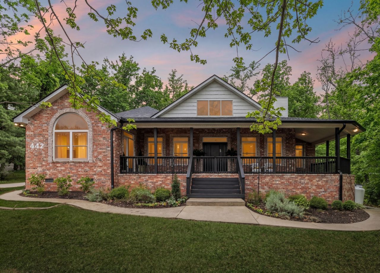 Experience Tennessee living at its finest in this stunning brick home set on 1.9 acres with a river view from the front porch and wooded privacy behind. A wraparound porch captures breathtaking sunrise and sunset views. The main level offers three bedrooms and two full baths, while an upstairs bonus/media room with a full bath sits above the oversized three-car garage. Designed for primarily one-level living, the home features generous storage and thoughtful upgrades throughout, including a chef's kitchen with an oversized island, abundant cabinetry, double ovens, cooktop, and stainless steel appliances. Architectural details include arched doorways and a wood-burning fireplace with stone surround. Updated bathrooms complete the interior. Enjoy views of the Cumberland River and easy access to Cedar Creek Marina, just a 15-minute drive away.