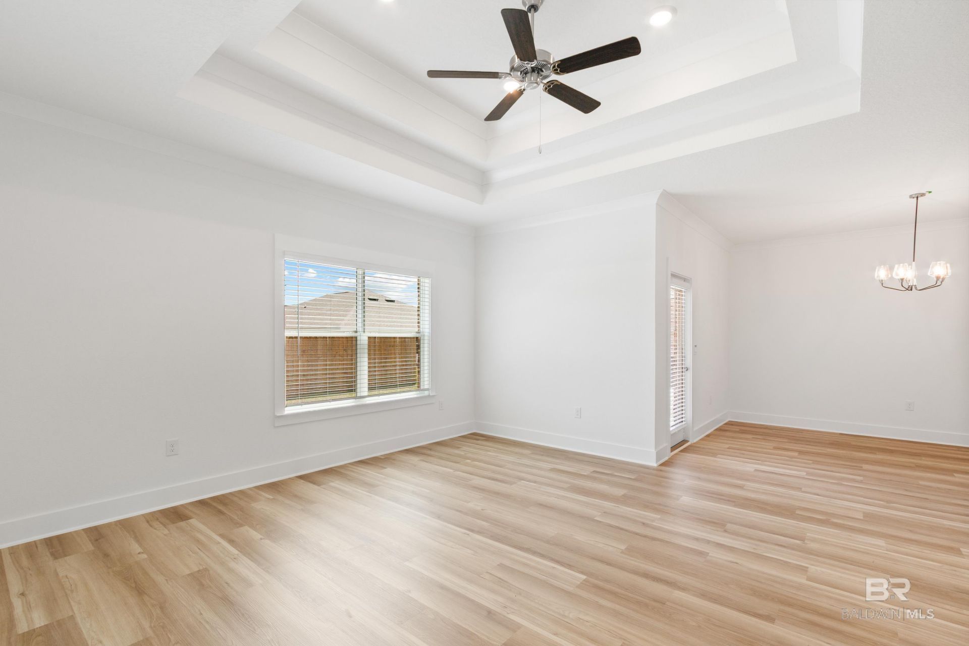 Welcome to The Rhett a beautifully designed one-story home offering 4 spacious bedrooms, 2 full bathrooms, and a 2-car garage, located in the highly desirable Raley Farms community in Gulf Shores Al.. This thoughtfully designed floor plan features a bright foyer that opens into a spacious open-concept living, dining, and kitchen area--perfect for entertaining and everyday living. The kitchen is the heart of the home and includes stainless steel appliances, a large walk-in pantry, and a center island with sink overlooking the main living space. Just off the kitchen is the breakfast nook. The split-bedroom layout provides privacy and flexibility. Two guest bedrooms and a full bath are located at the front of the home, while a third guest bedroom with its own full bath is tucked privately toward the rear. The primary suite is positioned in the back corner of the home and features tray ceilings, double vanities, a glass-enclosed shower, a garden tub, and a large walk-in closet. High 9-foot ceilings enhance the spacious feel throughout. Luxury vinyl plank flooring. Exterior features include a fully sodded yard & an extended driveway. & fenced yard (not pictured). Community amenities include a pool and playground just steps away. Conveniently located off Highway 59 and the Baldwin Beach Express. Seller is a licensed real estate agent in the state of Alabama. Buyer to verify all information during due diligence.