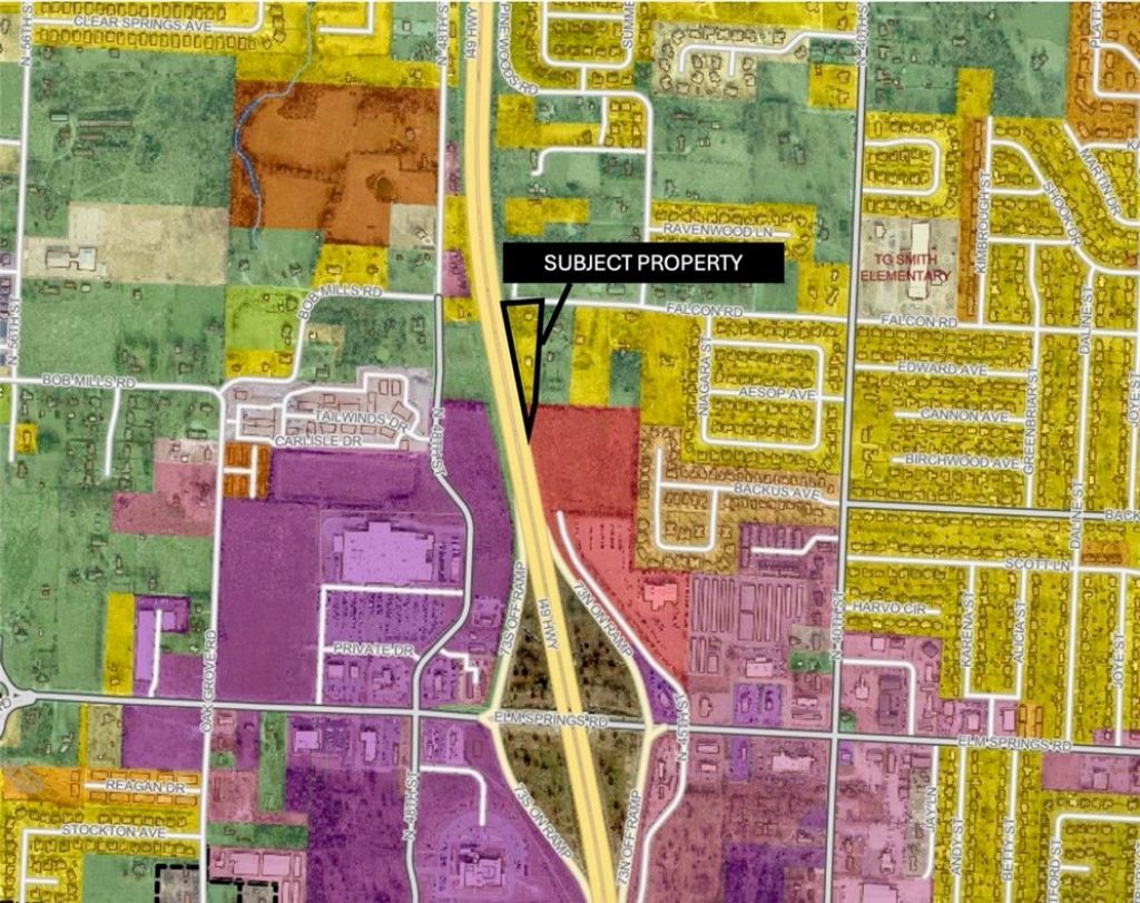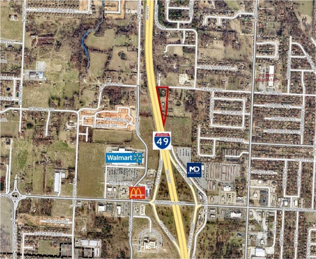 This almost 2 acre property is PRIME frontage literally right alongside the I49 corridor in Springdale. Three parcels total. The smaller parcel is zoned C6, while the other two parcels are currently zoned residential. Current plans from the City of Springdale identify Falcon Road to be expanded as an overpass which would connect the east side of I49 to the west side behind the Elm Springs Walmart. This location is ideal for businesses wanting high-volume visual exposure from I49. There is currently a 5 bedroom home on the property, which has potential to be used as on office space for a wide array of businesses, such as a landscaping company or a law office.