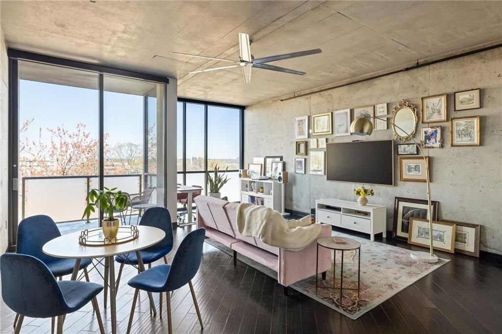 Welcome home to Tribute Lofts, located on Freedom Trail just a few blocks from The Beltline--the Ladybird entrance is a short 8 minute walk. This is a rare opportunity to own the largest 1br floor plan plus an assigned 4x12 storage unit. Step inside this bright north-facing unit and marvel at the soaring 10ft ceilings with panoramic windows spanning from floor to ceiling. This home has been meticulously cared for and updated with entertaining in mind. The wrap-around kitchen features sleek hidden appliances integrated seamlessly into the custom cabinetry, built-in cooktop, newer stainless steel appliances and lighting, and an unobstructed view over the quartz countertops to the living space. Wooden flooring has been installed over the concrete floors throughout the home to add warmth to the industrial feel of the space. Your new bedroom suite has been completely reimagined with a large custom closet system and an accent wall. A private outdoor patio is perfect for your morning coffee, or winding down after a long day. Tribute's rooftop amenities are among the best you'll find--a pool that converts to a hot tub for half of the year, a gym, and a clubhouse, all with incredible views of Downtown, Midtown and Buckhead. Other features include a bike storage room, dog wash area, coffee shop and brunch restaurant on the first floor, 6 electric car chargers in the garage, access to Google Fiber, a large courtyard, and a few gas grills throughout the common areas. The building is FHA approved.