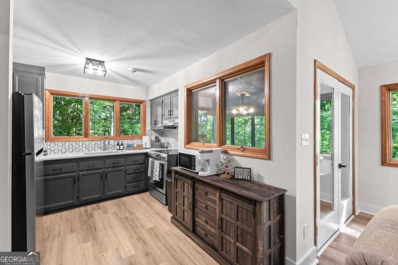 Your Very own vacation home or your next Short Term Rental/Investment ready to go! North Georgia Cabin is nestled on 0.5 acres in sought after Helen, Georgia. Charming 3 bedroom, 3 bath cabin boasts all new LVP flooring, a new roof, new gutters, new paint inside & out and all newly designed bathrooms. The spacious open living room features a vaulted ceiling, wood burning fireplace and plenty of windows to let in the natural light. The kitchen has new quartz countertops and open to living area for entertaining. A cozy covered porch on main floor is perfect for morning coffee or evening relaxation. You'll find 2 spacious bedrooms and 2 full baths on the main floor and the full finished basement offers a second living area/game room, additional bedroom, full bathroom and perfect space for more entertaining or relaxing. Both floors feature access to decks overlooking full wooded lot. The terrace level features a Spa Hot tub for relaxation. This home is available furnished. This Cabin is income produsing and PERFECT for your own mountain vacation home or to be used as a short term rental. Conveniently located close to local wineries, hiking trails, waterfalls and within Walking distance of Downtown Helen! Free Appraisal available when you use preferred lender Paige Grove-Mortgage Investors Group.