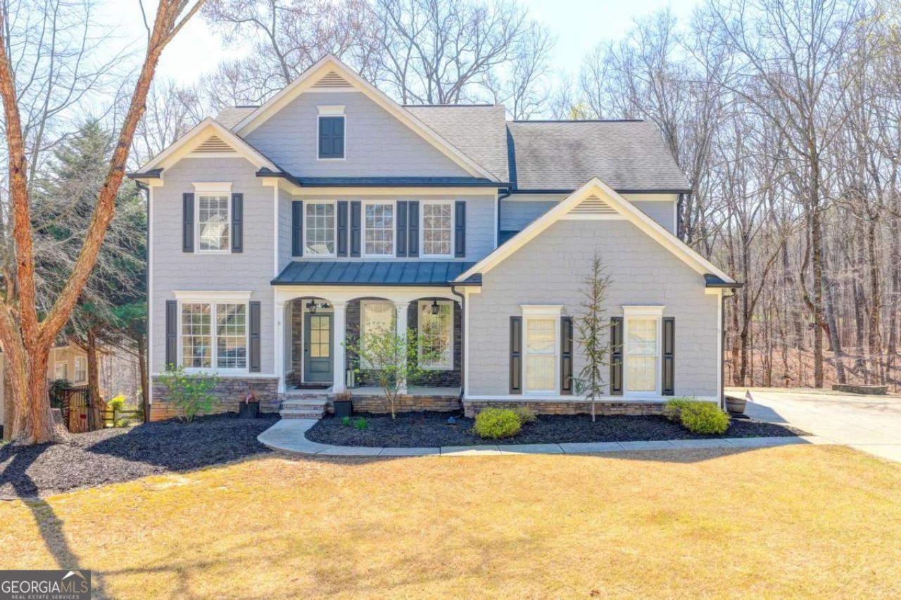 Welcome to the highly sought-after Chattahoochee River Club, nestled in the serene beauty of the National Forest. This exceptional community is surrounded by nature, offering tranquil forest views and access to fishing in the ponds and nearby river. This home features 4 spacious bedrooms upstairs, including an oversized primary suite, the bath includes seperate shower, whirlpool tub, double vanity and walk-in closet. On the main floor, you'll find a bedroom and full bath perfect for guests or a home office. The large eat-in kitchen offers stainless appliances, lots of counter space, walk-in pantry and overlooks the 2 story family room with a cozy woodburning fireplace. Step out to the large 3 season room, showcasing a cedar floor and ceiling with a beautiful stone fireplace and breathtaking views of the wooded 1 acre proprety. The finished basement adds even more living space with a full bath. Walk-out to the covered patio perfect for outdoor gatherings. With the welcoming front porch, and all the amenities of the Chattahoochee River Club, fishing, tennis, swim, hicking, basket ball and walking to schools- don't miss your chance making this your forever home.