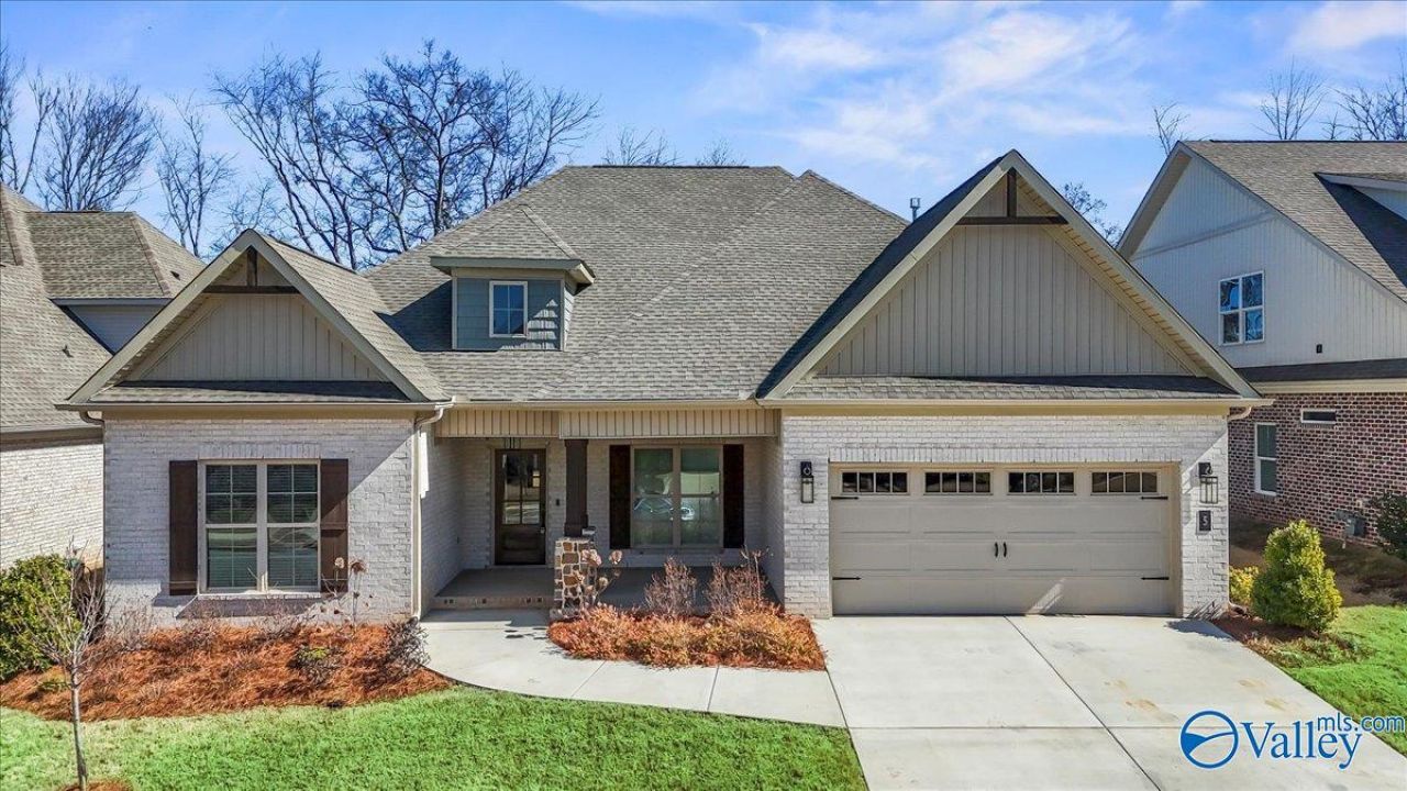Welcome to this beautifully crafted single-level home in The Grove at Sockwell Farms, where thoughtful design meets everyday living. This 4-bedroom, 3-bath home features a grand foyer and light-filled living area with soaring 11-foot ceilings and indoor fireplace. The open layout flows into the kitchen and dining spaces, while a split floor plan offers privacy for the primary suite with walk-in closet and spa-inspired bath with soaking tub. Enjoy a covered outdoor living area with fireplace and grilling space overlooking a fully fenced backyard. A 2.5-car garage provides ample storage. Comfort, craftsmanship, and a prime Huntsville location. Minutes to Redstone Arsenal & Research Park.