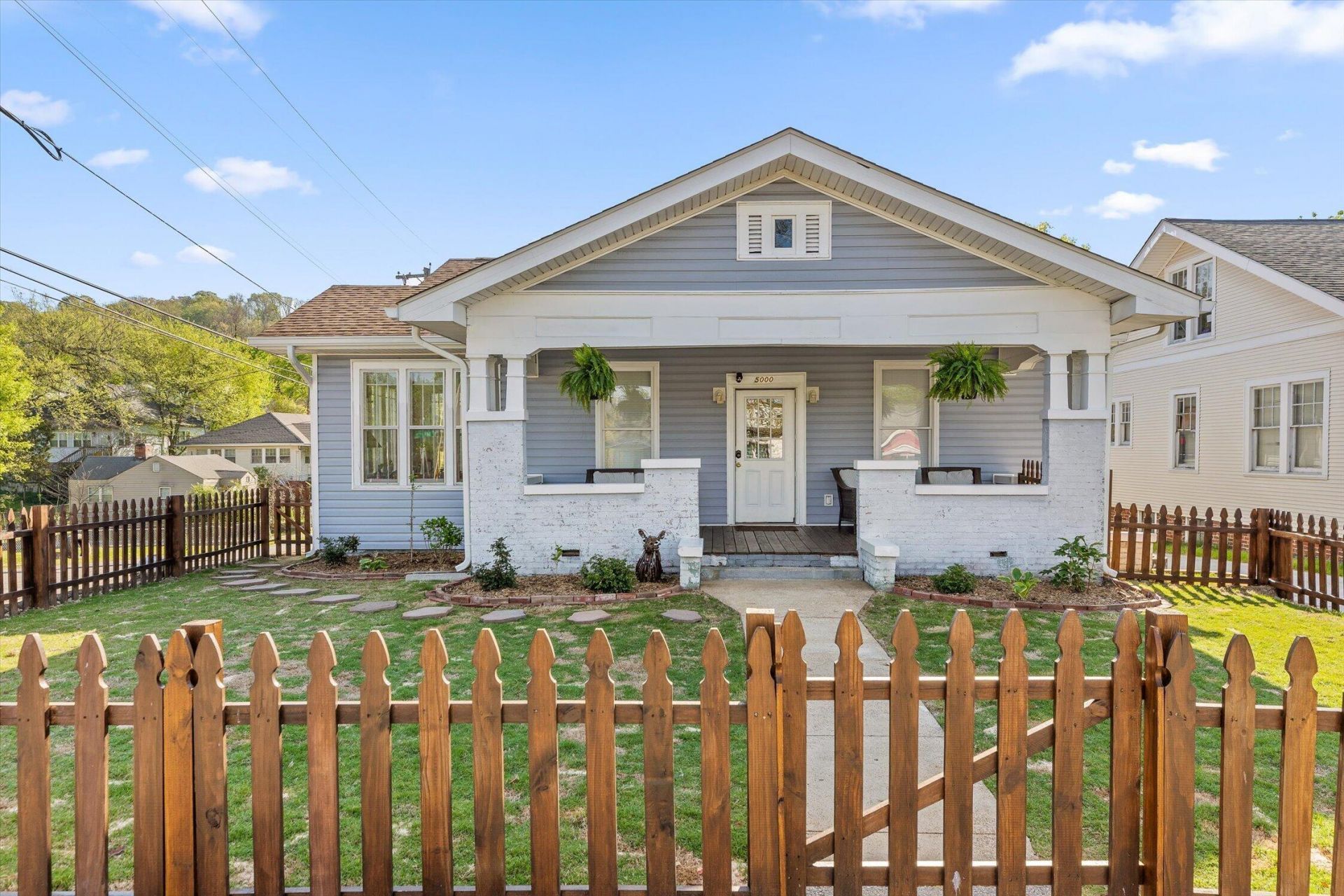 Welcome to 5000 14th Avenue, a charming craftsman bungalow in the growing neighborhood of Cedar Hills. For those who love a quick commute, this single-story home is perfectly located, just 10 minutes from downtown Chattanooga. Enjoy the brand new front porch and brand new front and back yard, both fully fenced! Set your mind at ease knowing that your new home has a new roof as well!This classic home boasts timeless design, versatile common spaces, ample storage, and large bedrooms!Start your day with coffee on the porch and enjoy the view of Lookout Mountain! As the weather gets a bit cooler, head inside to relax in the sunroom, with excellent natural lighting. The large living room and dining room provides plenty of space for hosting family and friends as you head into the holiday season!