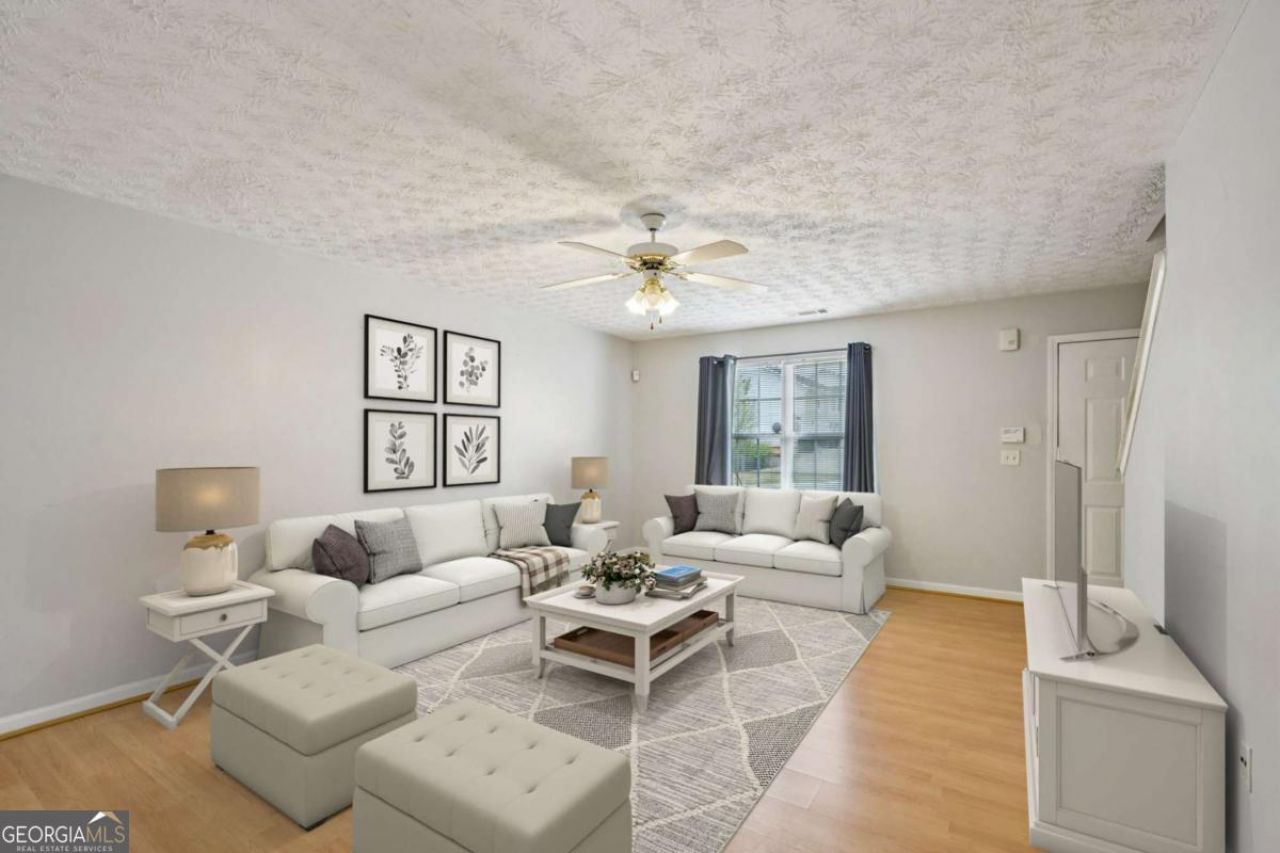 Move-in ready and beautifully maintained, this charming townhome shines from the moment you step inside! The bright, open living room welcomes you with gorgeous hardwood floors and tons of natural light, creating a warm and inviting atmosphere. The eat-in kitchen offers plenty of cabinet and counter space, along with easy access to the back patio, perfect for everyday living and entertaining. A convenient half bath completes the main level. Upstairs, retreat to the spacious primary suite featuring a stunning bay window and vaulted ceiling, along with a private en-suite bath. The second bedroom also includes its own en-suite bathroom, providing comfort and privacy. You'll also love the convenience of the upstairs laundry room! Out back, enjoy a private patio slab ideal for grilling, with a peaceful wooded backdrop for added serenity. Located in a desirable neighborhood close to shopping, dining, and amenities, with easy access to I-20-this home truly has it all! Book your tour today!