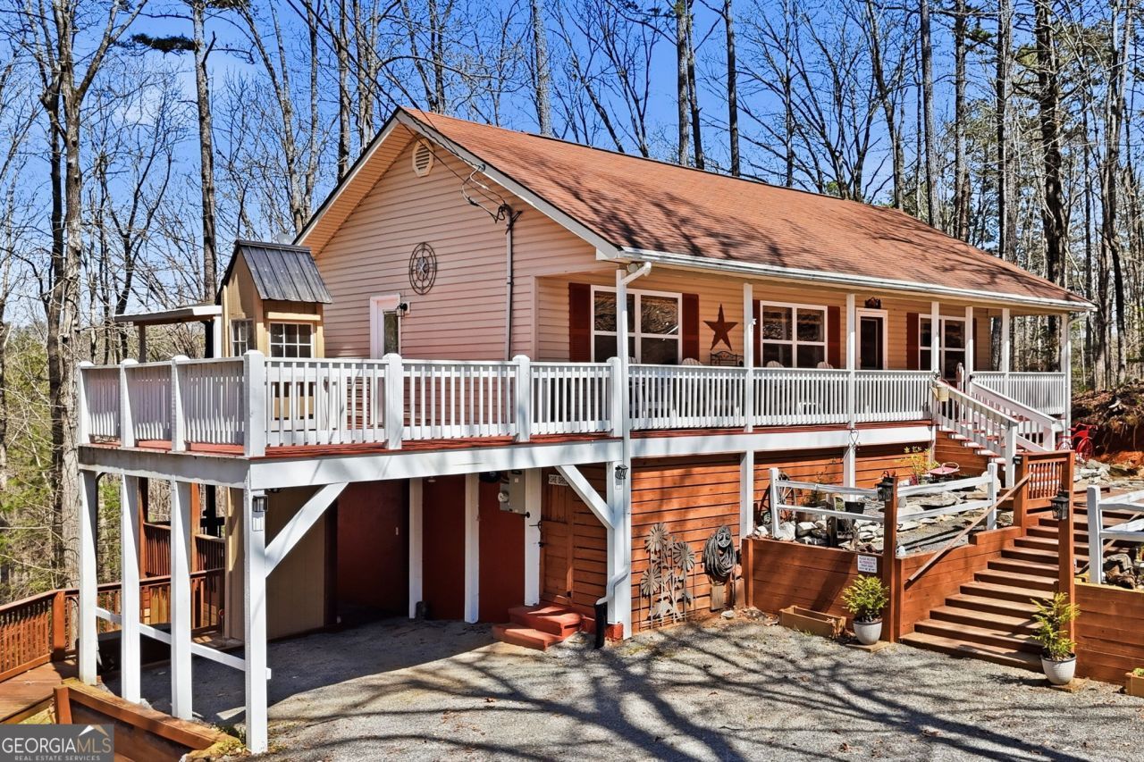 Welcome to your mountain retreat in the gated Coosawattee River Resort! This 2BR/2BA ranch-style home with basement offers comfortable main-level living with entry steps and a warm, inviting layout featuring an eat-in kitchen and a separate dining room that can easily serve as a home office, gym, reading room, or flex space to fit your needs. Enjoy the outdoors year-round from the enclosed back porch or relax and entertain on the extended deck. The basement adds additional flexibility for storage, workshop, or future expansion and features a covered, dry deck with a hot tub-perfect for unwinding after a day in the mountains. The home also includes covered parking, ample driveway space for guests, and an exterior dumbwaiter for added convenience. A generator is in place, providing peace of mind. Coosawattee River Resort offers a wide range of activities including hiking, fishing, tubing, junior Olympic-sized pool, tennis, basketball, pickleball, 18-hole miniature golf course along with many additional amenities throughout the community. Conveniently located just minutes from downtown Ellijay and a short drive to Blue Ridge, this home provides easy access to North Georgia's most popular attractions, including apple orchards, wineries, scenic hiking trails, Springer Mountain (the southern terminus of the Appalachian Trail), Amicalola Falls State Park, Fort Mountain State Park, Brasstown Bald, and abundant trout streams. An adjacent lot is included, adding approximately 0.57 acres for a total of over one acre, offering added privacy and potential. Whether you're looking for a full-time residence, weekend getaway, or investment opportunity, this property offers the perfect blend of comfort, location, and mountain lifestyle.