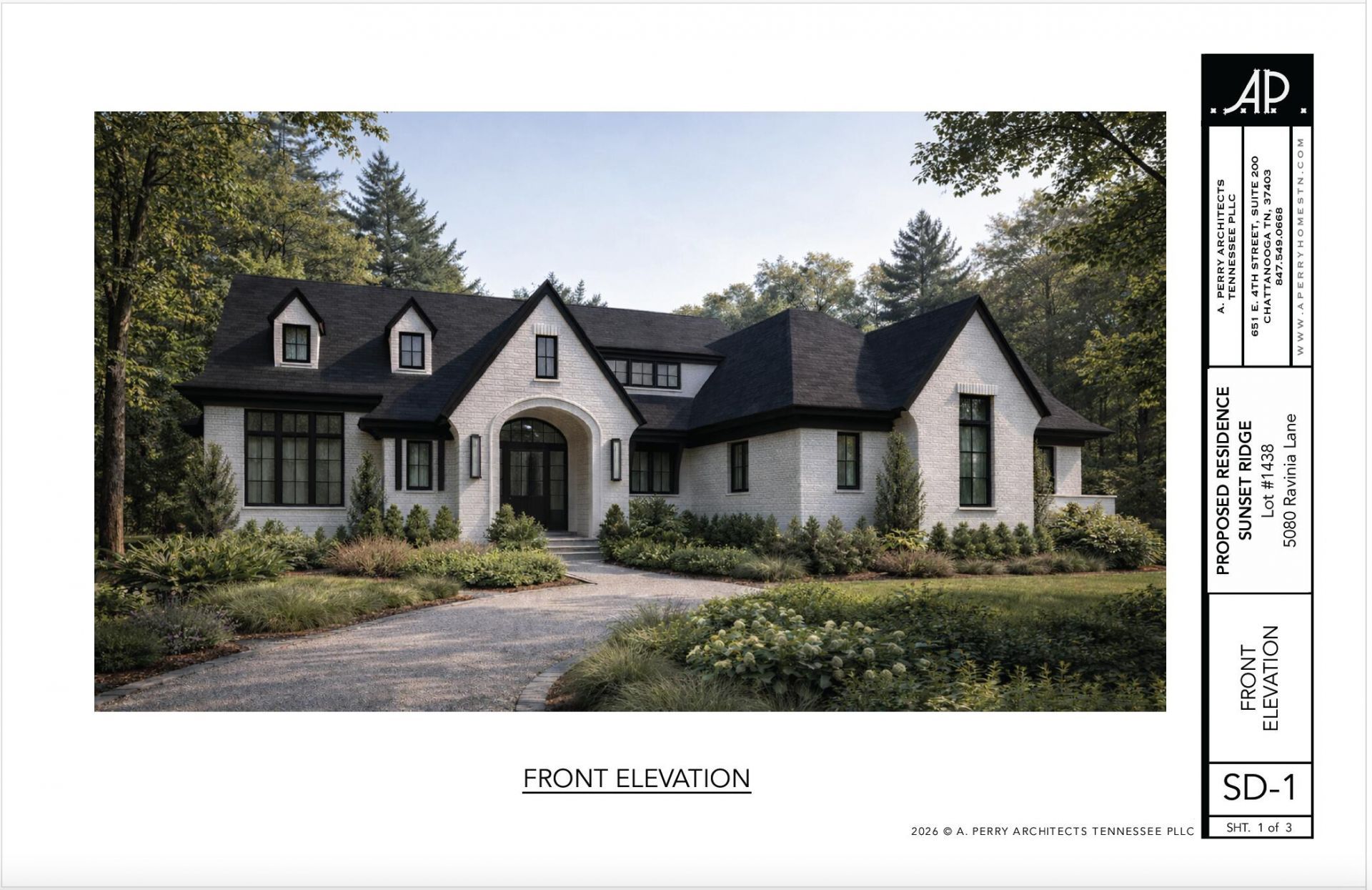 Welcome to 5080 Ravinia Lane featuring an Architect-authored home specifically for this lot on Sunset Ridge. The exterior features an elegant white brick exterior and peaked roof lines and gables in a transitional rustic design. Featuring three bedrooms with primary on main, with 2.5 baths, the large open floor plan creates an atmosphere of connectivity and togetherness while abundant windows allow you to enjoy serenity and peace amongst the trees of Black Creek. Come home to your dream home with A. Perry Homes in Black Creek Chattanooga. This heavily wooded .29 acre lot is adjacent to the wooded view on the northeast property lines so it feels much larger.