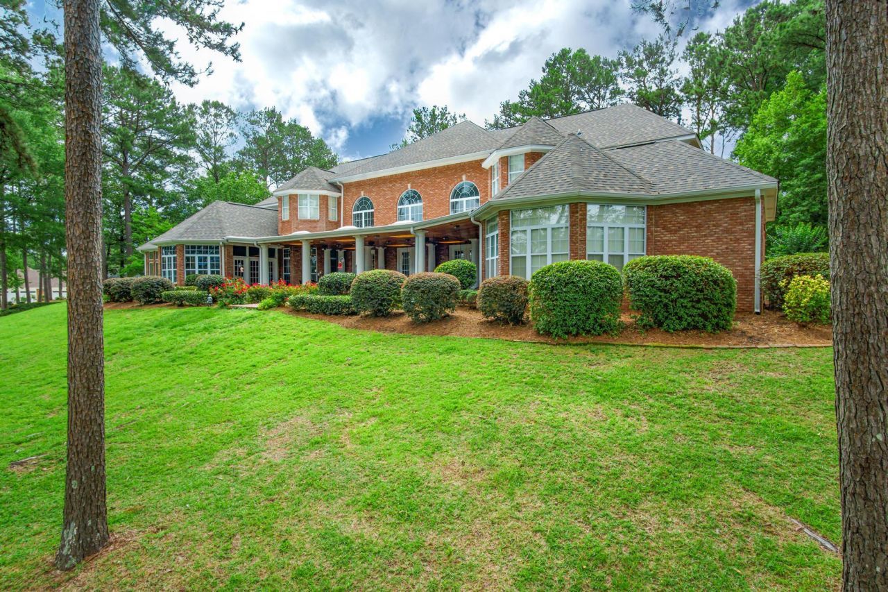 Brand New Roof! This lakefront estate sits on approximately 1.6 acres in the Oak Grove School District and offers rare privacy, a gated entrance, and panoramic water views from nearly every major room. The circular drive leads to a stately brick facade with soaring columns and a two-story arched window system that sets the tone for the scale and craftsmanship found throughout.Inside, guests step into an impressive foyer finished in Italian stone flooring beneath a massive chandelier. Dual curved staircases rise to the upper-level bedroom suites, each with its own private bath and walk-in closet. From the foyer, sightlines extend through the formal great room--designed with intricate millwork, two fireplaces with carved mantels, floor-to-ceiling arched windows, and multiple sets of French doors opening to the covered terrace overlooking the lake.The main-level primary wing is positioned for privacy and includes a spacious bedroom, an office with custom built-ins, and a wet bar. The attached bath features marble floors, a large soaking tub framed by decorative columns, separate vanities, and a walk-in shower.The formal dining room offers generous square footage, detailed trim, and tall windows for natural light. It connects directly to an expansive kitchen outfitted with rich custom cabinetry, granite counters, double islands (one with prep sink), a gas cooktop with decorative columns, wall ovens, and abundant storage. A large breakfast area and adjoining keeping room provide additional space, each showcasing extensive millwork, tall windows, and a fireplace.A bright sunroom wrapped in glass delivers uninterrupted views of the lake, landscaped grounds, and surrounding trees. Outdoor spaces include a covered terrace, brick pathways, and multiple seating areas positioned to overlook the private waterfront setting.Additional features include a three-car garage, large laundry room, generous closet storage throughout, tall interior doors, custom windows and transoms, plantation-style detailing, and the privacy of a gated brick entry.A rare combination of scale, craftsmanship, and setting, this property offers one of the most impressive lakefront positions in Oak Grove. Experience refined living at this landmark waterfront residence.