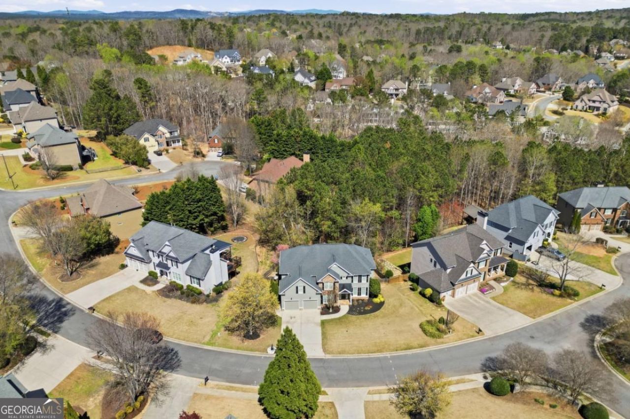Beautiful 5 bedroom BridgeMill home with a backyard big enough or a pool! Main level features an open living area with natural light, spacious kitchen with ample cabinet and counter space, dining area, bedroom on main, and separate office or additional living room with double-sided fireplace. Upstairs includes owner's suite with private bath and large walk-in closet, one secondary bedroom with ensuite bath, and two additional bedrooms with Jack and Jill bath. Finished basement offers additional living space with a bar and two open spaces large enough of pool table and/or ping pong table. Located in amenity rich BridgeMill subdivision that has optional resort-style amenities including 18-hole golf course, clubhouse, fitness center, tennis courts, pickleball courts, aquatic center with water slides, parks, playgrounds, and walking trails. Zoned for the new state of the art Cherokee High School. Level backyard, two-car garage, and convenient access to shopping, dining, and major roads.