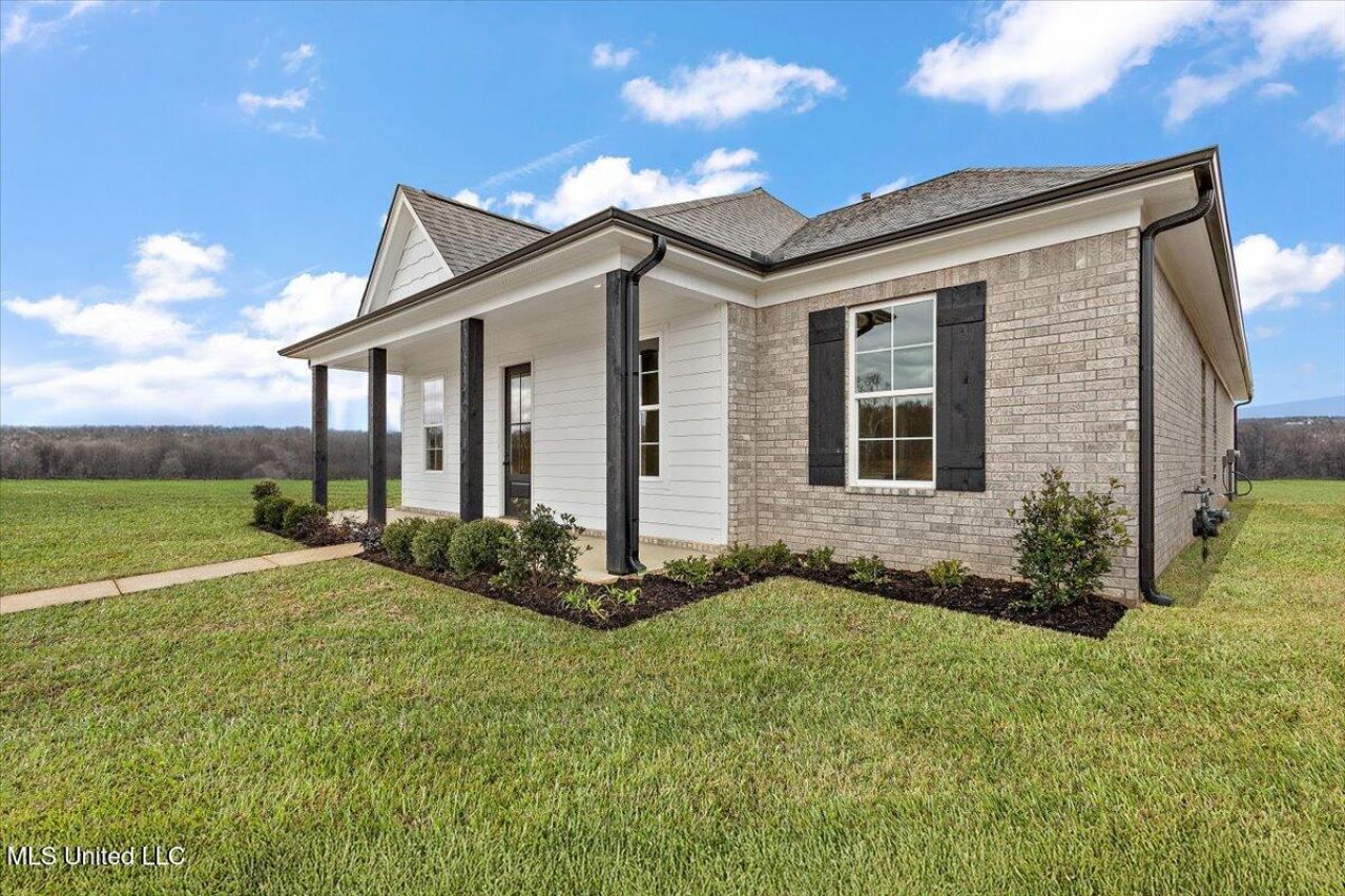 Seller will consider paying 3% in concessions towards the buyer's closing expenses with an acceptable offer.Welcome to more than just a home?welcome to a new way of life at Delta Landing, brought to you by Sky Lake Construction. The LeFlore Subdivision offers traditional homes with plenty of space for creating lasting memories. But this is more than a house; it's a vibrant community. Located just off McInvale, north of Highway 269 and across from the brand-new Hernando High School, this neighborhood will feature shops, restaurants, parks, and, above all, ultimate convenience.This charming home sits on a prime corner lot along the main boulevard, with an alley behind for easy parking and access to the garage. The Shaw Plan welcomes you with a covered front porch that leads into a cozy, spacious family room with 9-foot ceilings. You'll be greeted by an aray of natural light streaming through oversized windows, and a gas fireplace to make the space even more inviting. The open-concept design flows seamlessly into the dining area and kitchen, which has a large island perfect for entertaining. The covered back patio is conveniently accessible from the kitchen.With 1,813 square feet on a single level, this home feels expansive and thoughtfully designed. The primary bath offers two walk-in closets and a large soaking tub?ideal for unwinding after a long day. The standard features are exceptional, including recessed lighting throughout, wood flooring, tile-to-ceiling showers, granite or quartz countertops in all bathrooms, tile backsplashes, pendant lighting in the kitchen, wood shelving in all closets, and oversized windows that enhance the home's natural light.Come see this adorable home today?run, don't walk!