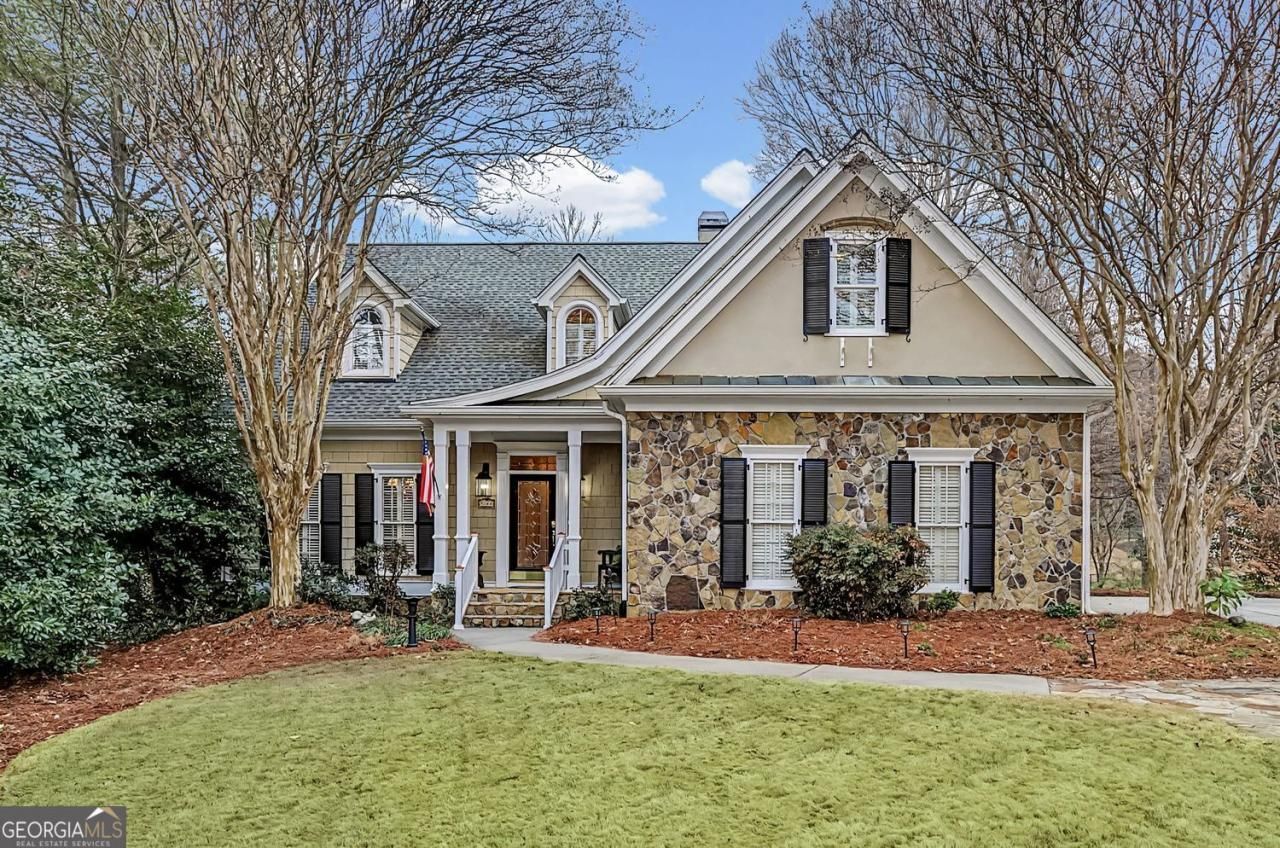 Edit mortgage details for a more accurate paymentTucked at the end of a quiet cul-de-sac in an active swim/tennis community-just steps from the Swim/Tennis Club-this Southern Living floorplan blends timeless architecture with an inviting, functional layout. The stone and shaker-style exterior, flat driveway, and charming front porch create a warm welcome. Inside, soaring ceilings highlight the two-story foyer and family room, flowing seamlessly into the kitchen, breakfast area, and sunroom. The kitchen features stained wood cabinetry, stainless steel appliances, gas range, warming drawer, and a tall pantry cabinet-classic style with room to personalize. A separate dining room easily hosts large gatherings. The main-level primary suite is a true retreat with a double-sided gas fireplace shared with the family room, private deck access, and a spacious bath with dual vanity, frameless shower, jetted tub, water closet, and walk-in closet. The screened porch-complete with bed swing and wired for TV and speakers-overlooks the backyard and extends the living space outdoors. Upstairs, a catwalk overlooks the living space below and leads to generously sized secondary bedrooms. Two bedrooms share a bath, while an oversized third bedroom (an ideal junior suite) includes an ensuite and dual walk-in closets. The unfinished basement mirrors the home's full footprint, with ceiling height that will still feel spacious and open once finished, and includes a reinforced interior room, offering incredible potential for future expansion. Step outside to a covered patio, grassy play area, and wooded natural backdrop. Hardwood floors span the main level, new carpet is upstairs, and plantation shutters are throughout. Major updates include a 2023 roof, 2024 HVAC components, and a 2022 deck extension. The seller is including a prepaid one-year swim/tennis membership to help you settle right into the neighborhood this summer. A well-designed home with space, character, and opportunity! Tour it today and imagine the possibilities of making it your own.
