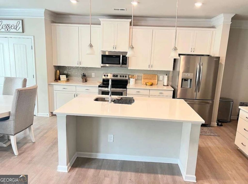 Welcome to 5290 Burrus Lane SW in Mableton, where comfort, space, and modern design come together in a beautifully designed home. This 4-bedroom, 2.5-bath residence offers a functional layout ideal for both everyday living and entertaining. The main level features a stunning open-concept design with a spacious kitchen that seamlessly overlooks the family room and dining area. The kitchen is thoughtfully designed with quartz countertops, a stylish tile backsplash, 42-inch cabinetry, abundant counter space, and a convenient built-in desk-perfect for working from home or managing daily tasks. Upstairs, you'll find all four bedrooms, including an enormous owner's suite designed for relaxation. The owner's bath offers a spa-like experience with a garden tub, a frameless tile shower, and ample space to unwind. The additional bedrooms are generously sized and share a well-appointed full bathroom. Conveniently located in Mableton, this home provides easy access to I-285 and I-20, making commuting to Downtown Atlanta, Truist Park, and The Battery Atlanta effortless. Enjoy nearby shopping, dining, and outdoor recreation at Silver Comet Trail and Sweetwater Creek State Park. This home offers the perfect blend of modern finishes, spacious living, and prime location-ready for its next owner to make it their own.