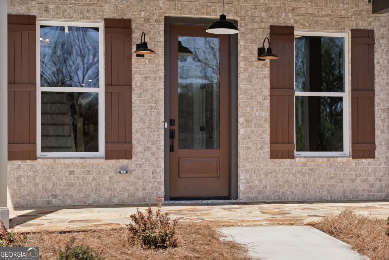 NEW CONSTRUCTION !!! NEW PLAN!!! - The Retreat Plan is a new 4-bedroom 2-story home for WD Thomas Homes NGA LLC. Timeless Traditional Elegance Meets Modern Luxury Nestled in a private, serene setting, this stunning two-story traditional home perfectly blends classic curb appeal with sophisticated interior design. A generous 20-foot setback from the front porch, a two-car front-entry oversized garage with overhang canapoy, accented brick wall, highlighted by black Wall sconces, allows the front porch to welcome you with beautiful flagstone and brick accents. Highlighted by a sleek 3-quarter glass front door. Spacious Open-Concept Living Step inside to soaring ceilings and an expansive open floor plan. A wide, grand staircase in the front entryway leads to the upper level, while the heart of the home flows seamlessly between the living, dining, and entertainment areas. Centrally located on a sleek accent wall, a modern electric fireplace creates a warm focal point, offering endless possibilities for furniture and entertainment equipment placement. A Chef's Dream Kitchen Tucked at the rear of the home for privacy and backyard views, the kitchen is a masterpiece of function and style. Massive Island: A 9-foot-wide, 4-foot-deep quartz-topped center island anchors the space. Designer Finishes: Custom barley-colored cabinetry is paired with high-end stainless-steel appliances and a work-station sink located under a window with a backyard view, integrated seamlessly along the perimeter walls, keeping the workspace clean and open. The under-cabinet lighting keeps your counters bright, even on the cloudiest days Convenient Access: Just off the living area, a dedicated mudroom with a built-in bench and double closet leads directly to the garage. Private Suites for All Each of the four spacious bedrooms features its own private ensuite bathroom, plus an additional powder room for guests. Main Level Retreat: A full guest suite on the first floor offers a tile shower, white cabinetry, and bold black accents. Owner's Sanctuary: Upstairs, the master suite boasts barley-colored double vanities, black hardware, and a spa-like retreat featuring a freestanding white tub and a walk-in shower finished in marble-colored ceramic tile. The massive walk-in closet provides direct access to the laundry room for ultimate convenience. Additional Bedrooms: Two more large bedrooms upstairs each include full baths with white cabinetry and black accents, with easy hall access to the laundry. Outdoor Paradise Enjoy the tranquility of a tree-lined, private lot from your covered back porch. The lush, sodded backyard is easily accessed through the center of the home between the kitchen and living area, providing the perfect backdrop for outdoor gatherings or quiet mornings. The sprinkler system in both front & backyard will keep your lawn hydrated automatically. All bedrooms, the family room, and the back porch have remote -controled ceiling fans. The main level of the home has engineered hardwood floors in a warm light brown finish, creating a seamless transition to all the rooms while complementing the kitchen cabinets. Upper level of the home has natural color carpet, creating a cozy, warm vibe in the bedrooms.