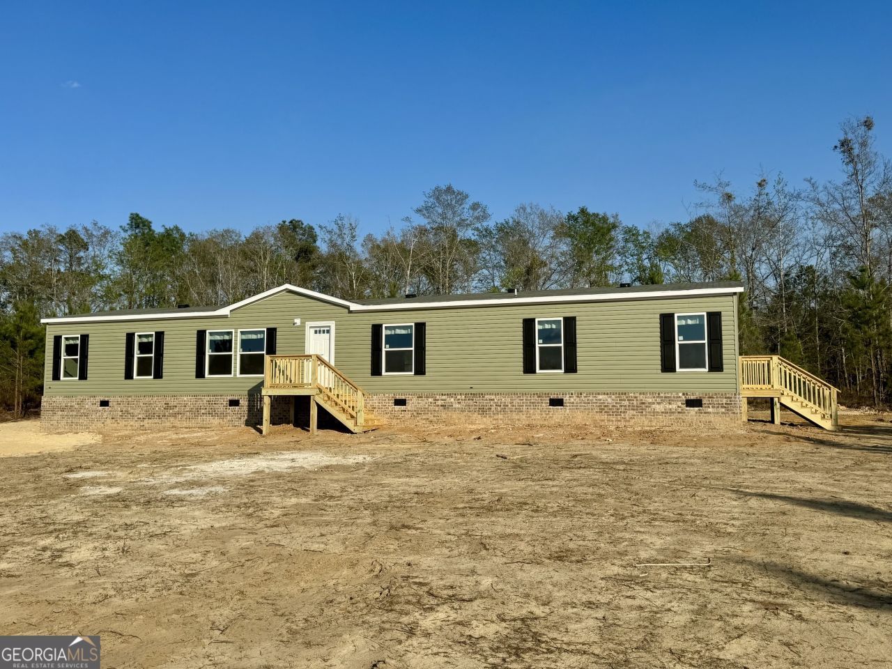 BRAND NEW 4 bedroom, 3 bath manufactured home with brick foundation in the country on over 3 acres of land!! Home is on a permanent foundation. Seller has invested in upgrades to ensure the long term durability of the home, such as concrete footers and OSB wrap. FHA, USDA, VA, and conventional financing available. Step inside your brand new home to an open concept floor plan featuring a spacious living area that flows seamlessly into a modern kitchen complete with ample cabinet space, an island, and room for family gatherings. This home also offers a den that can easily double as a playroom for a growing family. The primary suite is a true retreat with a private bath featuring a double vanity, large shower, and spacious walk in closet. Three additional bedrooms and two full baths provide plenty of space for family, guest, or a home office. Outside enjoy wide open spaces perfect for gardening, animals, recreation, or simply relaxing and taking in the peaceful surroundings. With over 3 acres, there's room to build a shop, pool, or create your own outdoor oasis. If your looking for privacy, space, and a brand new home in the country while being close enough to town to be convenient, this one checks all the boxes. Schedule your showing today!!