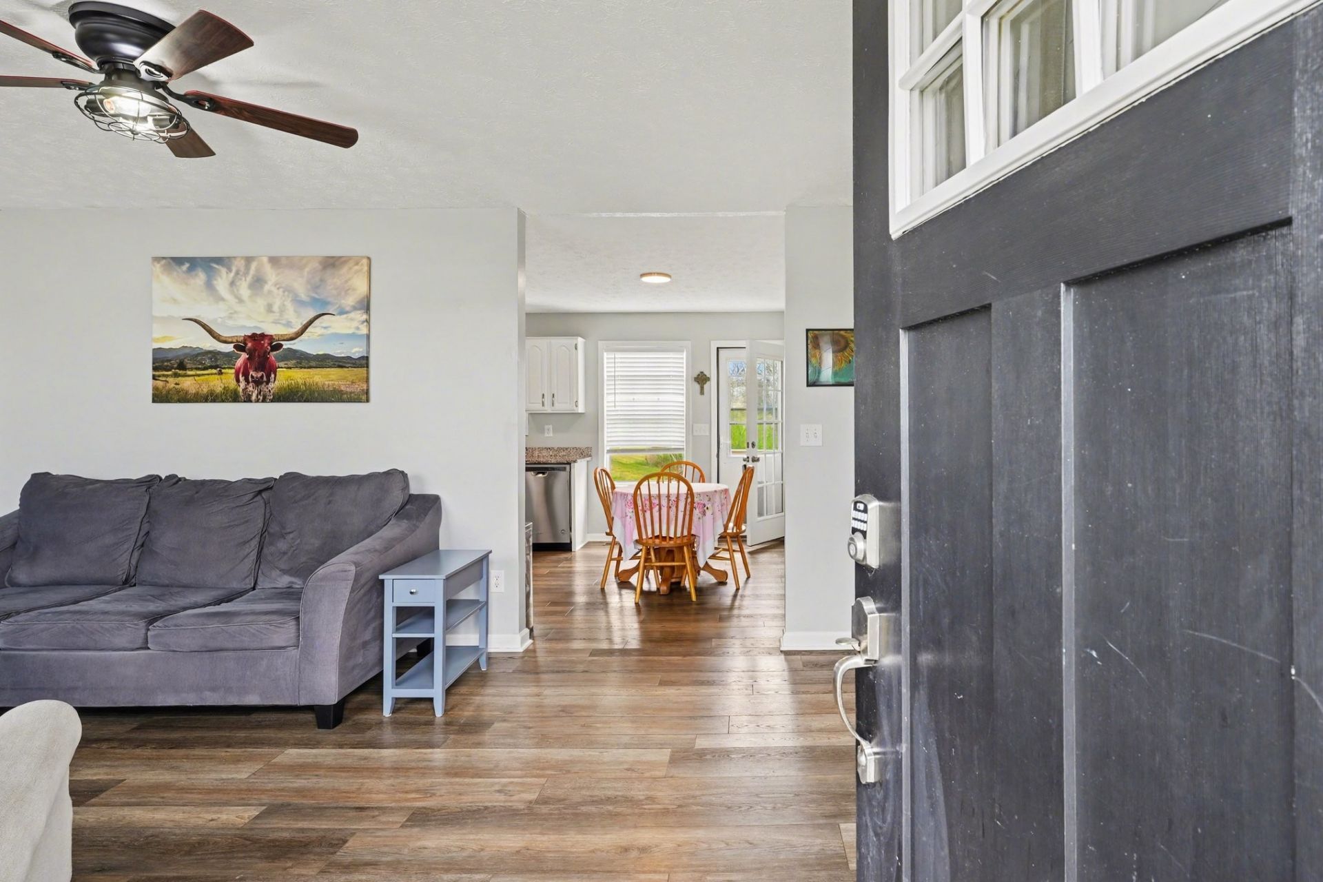 Escape to peaceful country living with this charming one-level home nestled on a spacious 1.47-acre lot in the heart of Westmoreland! This well-maintained 3-bedroom, 2-bath home offers the perfect blend of comfort, functionality, and scenic surroundings. Step inside to a bright, sun-filled living room that flows seamlessly into a spacious eat-in kitchen, creating an ideal layout for entertaining family and friends. The primary suite features a private bath and walk-in closet, while two additional generously sized bedrooms provide flexibility for guests, a home office, or growing families. Enjoy quiet mornings or relaxing evenings on the back deck overlooking open countryside, offering beautiful, unobstructed views and plenty of privacy. The oversized two-car garage provides ample storage for vehicles, tools, and outdoor equipment-perfect for those who love space and functionality. With its single-level layout, expansive lot, and peaceful setting, this home delivers the best of rural living while still being within easy reach of nearby towns, shopping, and dining.Don't miss your opportunity to own this move-in ready slice of Tennessee countryside-schedule your showing today!