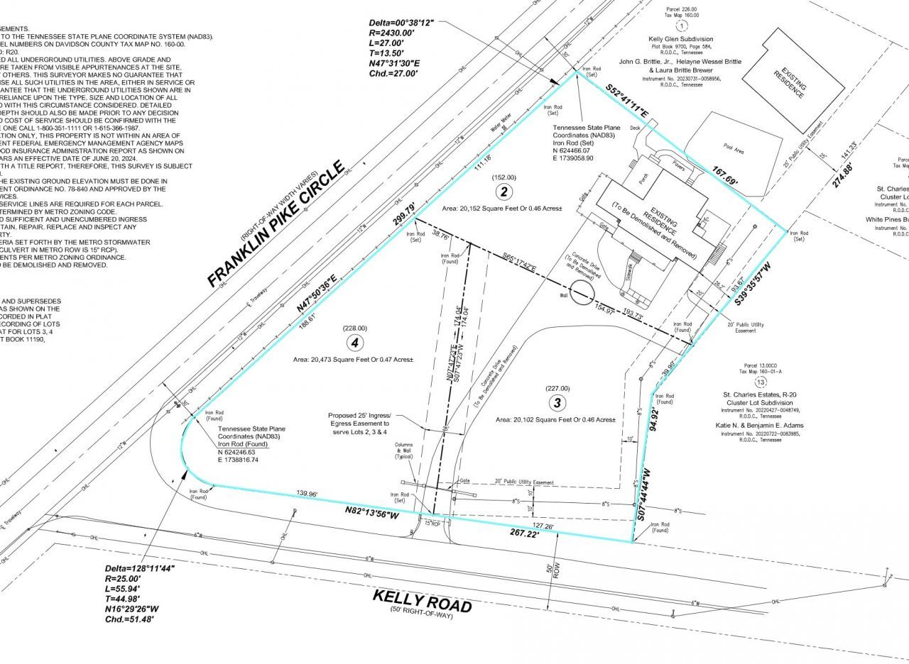 Three R20-zoned lots sold together as one development opportunity in Brentwood- 1.39 acres (three-lot total) at the corner of Franklin Pike Circle and Kelly Road. Build new construction, develop a family compound, or maximize the site's full potential under existing R20 zoning. Each lot exceeds the 20,000+ sq ft minimum, and under R20 zoning each lot may support a two-family configuration, creating potential for up to six total dwellings across the three parcels. This offers flexibility for a builder, developer, or buyer ready to bring their dream home vision to life. Situated in an established corridor seeing active luxury new construction. City water and public sewer available. Subject to Metro review and permitting. Buyer to verify all development feasibility, zoning, utilities, easements, and permitting with Metro. All three lots also available individually- Lot 2 (5476 Franklin Pike Cir) MLS# 3164411; Lot 3 (5502 Kelly Rd) MLS# 3143427; Lot 4 (5500 Kelly Rd) MLS #3164412.