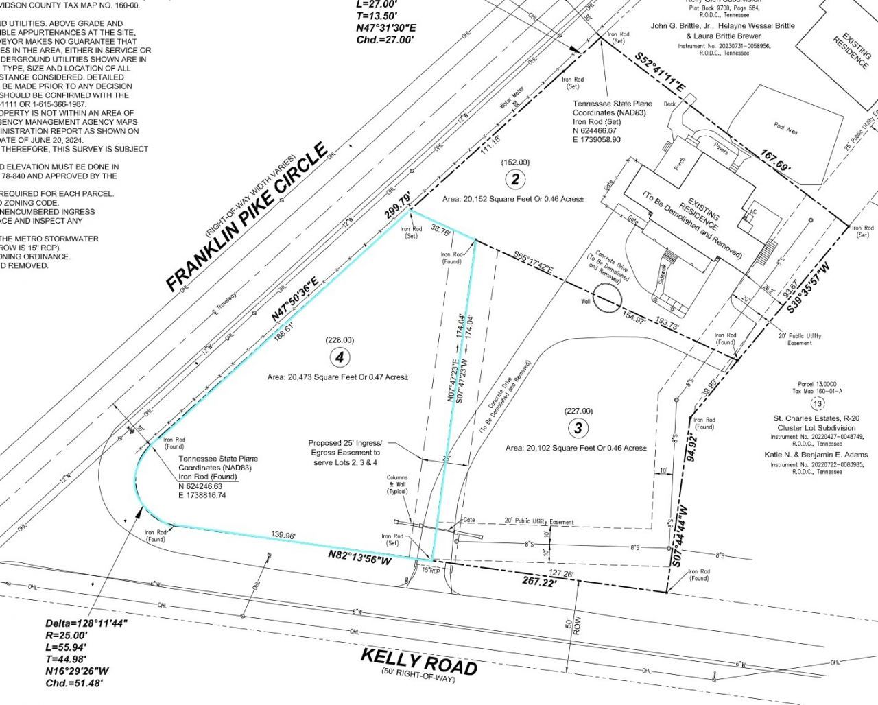 Lot 4 of the Kelly Glen Subdivision- a 20,000+ sqft R20-zoned corner lot at Franklin Pike Circle and Kelly Road. Build new construction in an established Brentwood corridor seeing active luxury development. Supports single or two-family development configurations, subject to Metro review and permitting. Adjacent lots also available individually or as a package deal. Buyer to verify all development feasibility, zoning, utilities, easements, and permitting with Metro.