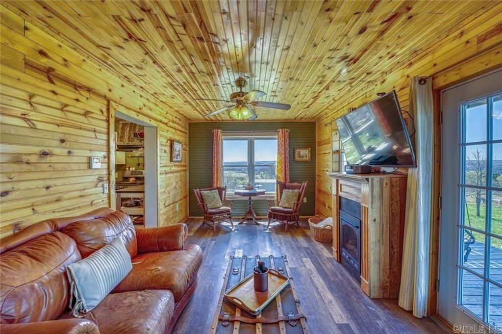 Cabin on 21.8 m/l unrestricted acres! 3 BR, 2 full BA cabin built in 2012 is just what you've been looking for! Coffee tastes better on the covered front porch as the sun rises, and evenings? They belong on 1 of 2 back decks with those big, bold sunset views that never get old! Inside you will find an updated kitchen featuring butcher block tops, gas connection for the stove, and an inviting layout that flows right into the living room that features a gas fireplace and new LVP. But the primary suite??? that???s where things get downright irresistible! Think claw-foot soaker tub, a roll-out window that lets the fresh country air in while you relax, an electric fireplace for a little extra ambiance, and a custom-built vanity that???s truly one-of-a-kind. The suite also opens directly to your private upper deck! Outside you will find peach trees, pear trees, a pond, wildlife???deer, turkey, and more???makes this property feel like your own private nature preserve. There???s also a shop building and a brand-new roof in 2025.