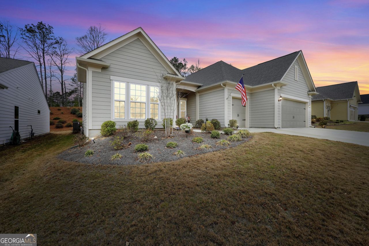 Embrace the Ultimate 55+ Lifestyle in Sun City Peachtree with this ALMOST new home. Location is the key factor to this home; it is located on a premium cul-de-sac lot with a huge coveted green space in front of the home and no neighbors behind you. Step into the epitome of luxury and comfort with one of the most sought-after floorplans - the Dunwoody Way Plan. Known for its expansive and open layout, this home is a haven of elegance with upgraded Luxury Vinyl Plank (LVP) floors, beautiful tile, updated lighting, ceiling fans and five-inch baseboards designed for those who cherish wide open spaces and refined living. At the heart of this home is a chef's dream kitchen, featuring a large center island that serves as a focal point for gatherings, offering seating for four. Enjoy unobstructed views of the family room, breakfast area, and foyer, ensuring you're always part of the conversation. The kitchen boasts a huge walk-in pantry, top-end KitchenAid appliances featuring a 5-burner gas cooktop, electric oven and microwave oven combination, raised dishwasher, granite countertops with tile backsplash, under-cabinet lighting, soft-close cabinets with pullouts and ample workspace, creating the perfect blend of functionality and style. A bonus walk-in deep closet located off the laundry room is included for additional floor-to-ceiling storage. Indulge in the comfort of three spacious bedrooms, and three full baths. One of the bedrooms serves as a second master suite. The three-bay garage offers an extended 4-foot-deep garage space which easily accommodates two full-sized vehicles and has a dedicated garage door for golf cart, motorcycles, bikes, or whatever toys you fancy. The attic space above the garage is a huge builder engineered/builder constructed stand-up storage area. Bask in the natural light of the expansive owner's suite, leading to a luxurious bath with double vanity, garden tub, and an easy-entry walk-in shower. The meticulously organized walk-in closet with adjustable shelving is a dream for the tidy-minded. The back of home is complemented by a covered Lanai with an additional 8-foot patio that includes a natural gas line for the grill. With no homes or roads directly behind, the covered Lanai offers a serene escape, perfect for enjoying meals, entertaining large groups or indulging in morning coffee amidst the tranquility of wooded views and nature's melody. Additional home features include a flex room, spacious laundry room with cabinet storage, gas fireplace, and a water heater recirculating pump with a dedicated return line which enables nearly instant hot water at all hot water taps. Sun City Peachtree is not just a home; it's an unmatched lifestyle. With the 45,000 sq ft Club Peachtree at your disposal, enjoy a ballroom, library, billiards, darts room, movie theater, heated indoor/outdoor pool, state-of-the-art 2-story fitness center, tennis, bocce ball, pickle ball and tennis courts, dog park, grandchildren's playground, softball field, and more. A full-time lifestyle director ensures a vibrant community life with over 60 clubs and interest groups, complemented by a private 18-hole golf course in this golf cart-friendly community. Walking trails and golf cart lanes blanket the community. Don't let this extraordinary opportunity pass you by. Experience the exceptional lifestyle awaiting in Sun City Peachtree. All the shopping, dining and additional entertainment you could possibly need is less than 10 minutes away incl