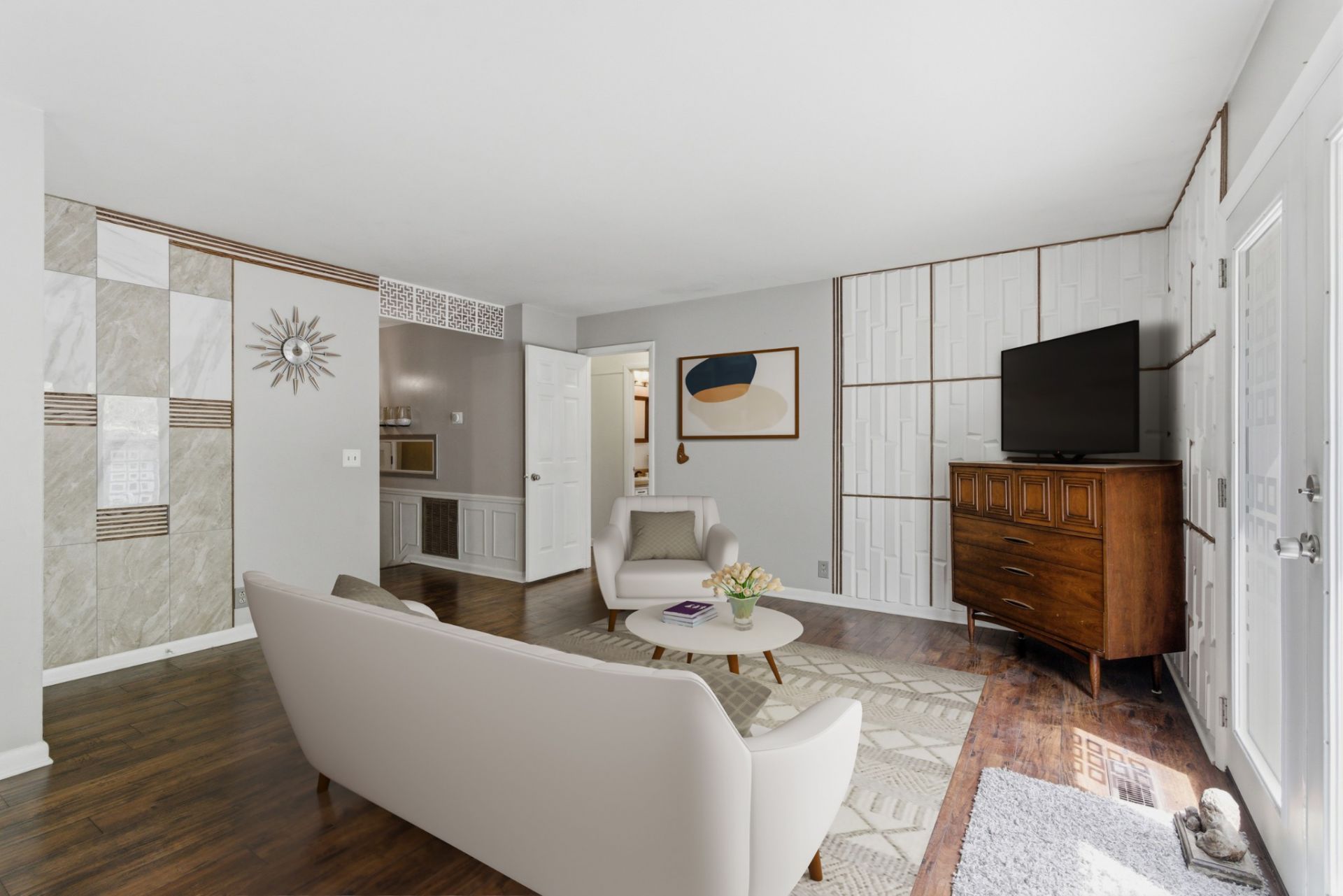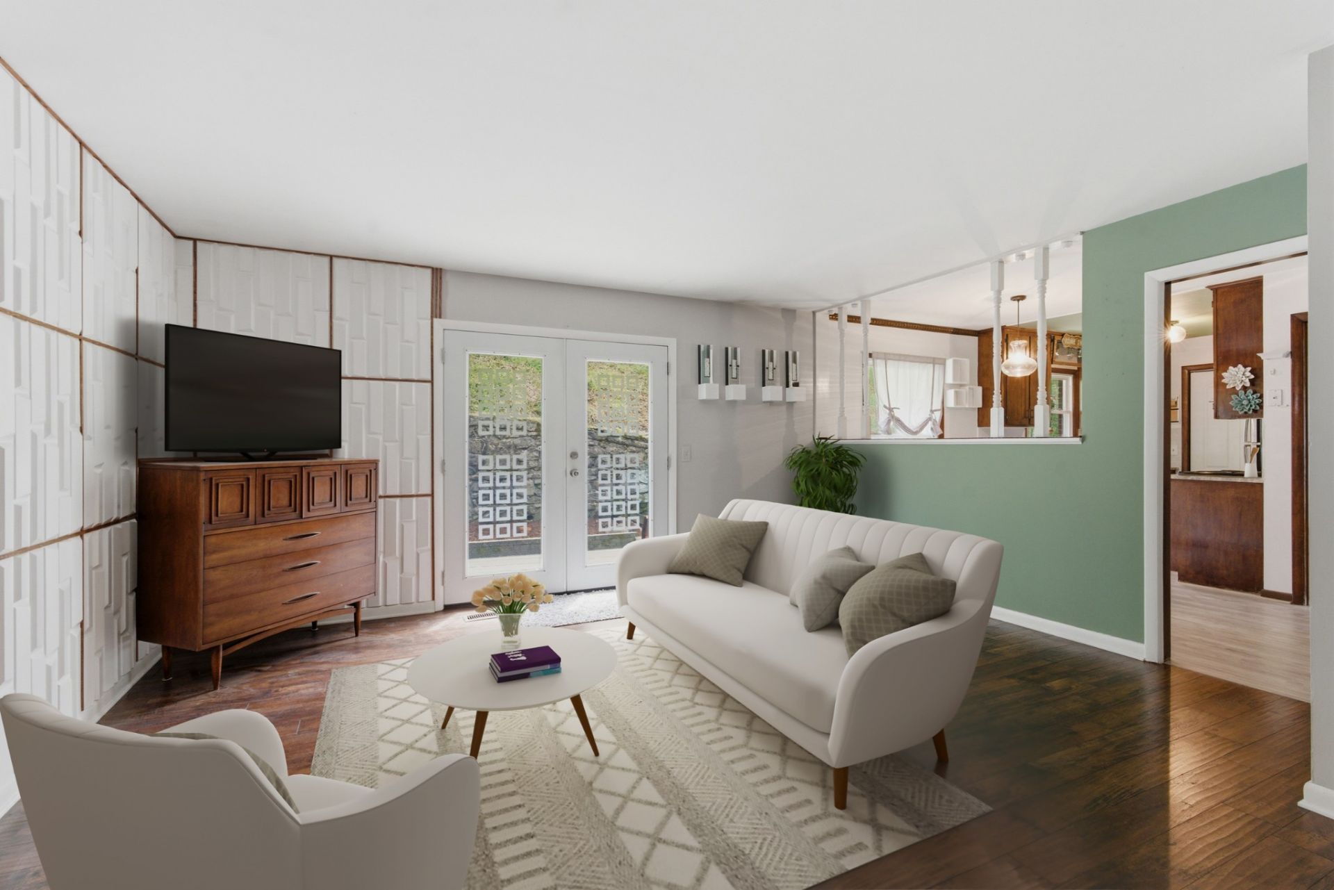 Some homes say I'm perfectly fine & a little vanilla, and some homes say let's have a freakin' party & dance the night away! When you arrive at the vibrant front door of 557 Holt Valley Rd, you immediately know you're in for a good time. Expertly blending a bit of the past w/ the updates of today, this home is ready to impress those seeking out a little fun. Nothing to do but move your furnishings into this retro build w/ fresh paint throughout, updated flooring, updated windows, new light fixtures, & one-of-a-kind touches around every corner. Just inside the entry hall w/ coat closet sits the living room w/ decorative panels & views through to the dining area & kitchen beyond. Sunlight pours through the french doors looking out to the wooded backyard w/ beautiful landscaping & fantastic deck space. Cook up a feast in the eat-in kitchen complete w/ vintage cabinetry, granite countertops, tile backsplash, stainless appliances, & dining nook. The primary bedroom has an ensuite half-bath, & the two additional guest bedrooms flank the home's full bathroom. A large bonus room awaits any number of needs from a home office, media room, playroom, gym, or whatever you can dream up! A convenient laundry closet w/ storage shelving is located right off the kitchen as well. The extra deep, basement level garage offers generous storage space & access to the walk-in crawlspace. Ideal location in Bellevue on a dead end street located only minutes from Bellevue One Place & so many shopping, dining, entertainment, & park options this area has to offer. Plus, you're only a 15 minute drive to downtown Nashville! If you've been waiting for that perfectly unique place to call home, this is it!
