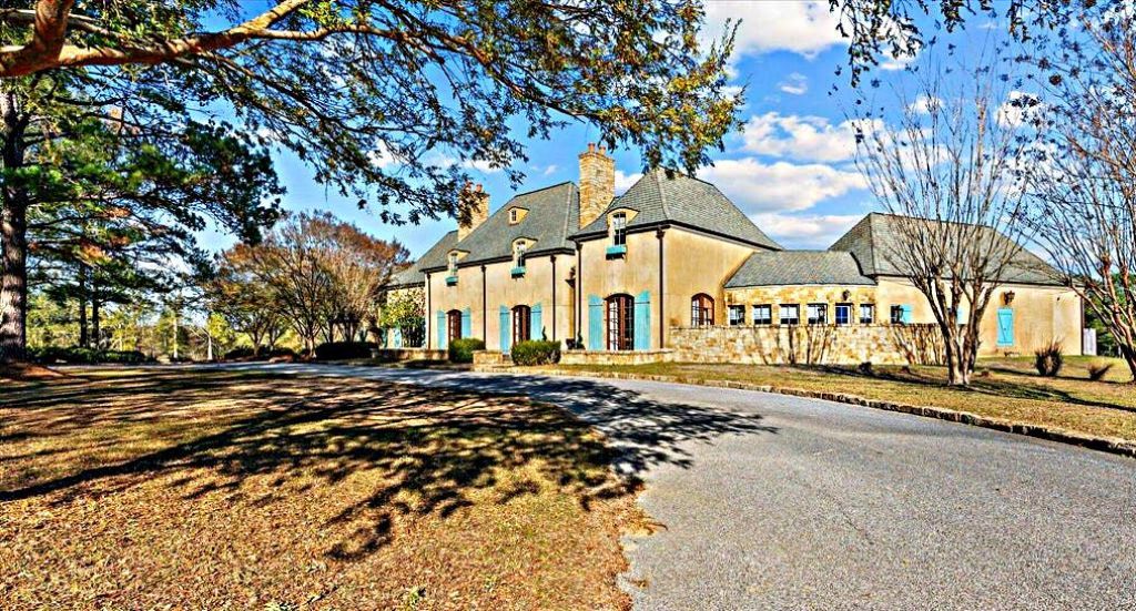 Perched on a hilltop with sweeping views in West Jones County, this five-bedroom, five-bath French Country estate blends historic craftsmanship with modern luxury. Highlights include 12-foot ceilings, virgin cypress wide-plank floors, 18th-century New Orleans doors, cypress beams from the Godchaux Sugar Mill, Montana stone, and Canadian White Spruce studs. The grand foyer features custom millwork and Scalamandre wallpaper, while a turret with a stunning spiral staircase serves as the home's centerpiece. Outdoors, enjoy a custom gunite pool and hot tub, 40x60 barn, 1,192 sq. ft. guest cabin, four-car garage, and built-in generator. Furnishings are available for a seamless turnkey experience. A rare opportunity to own a masterfully crafted estate with privacy, elegance, and unparalleled detail.