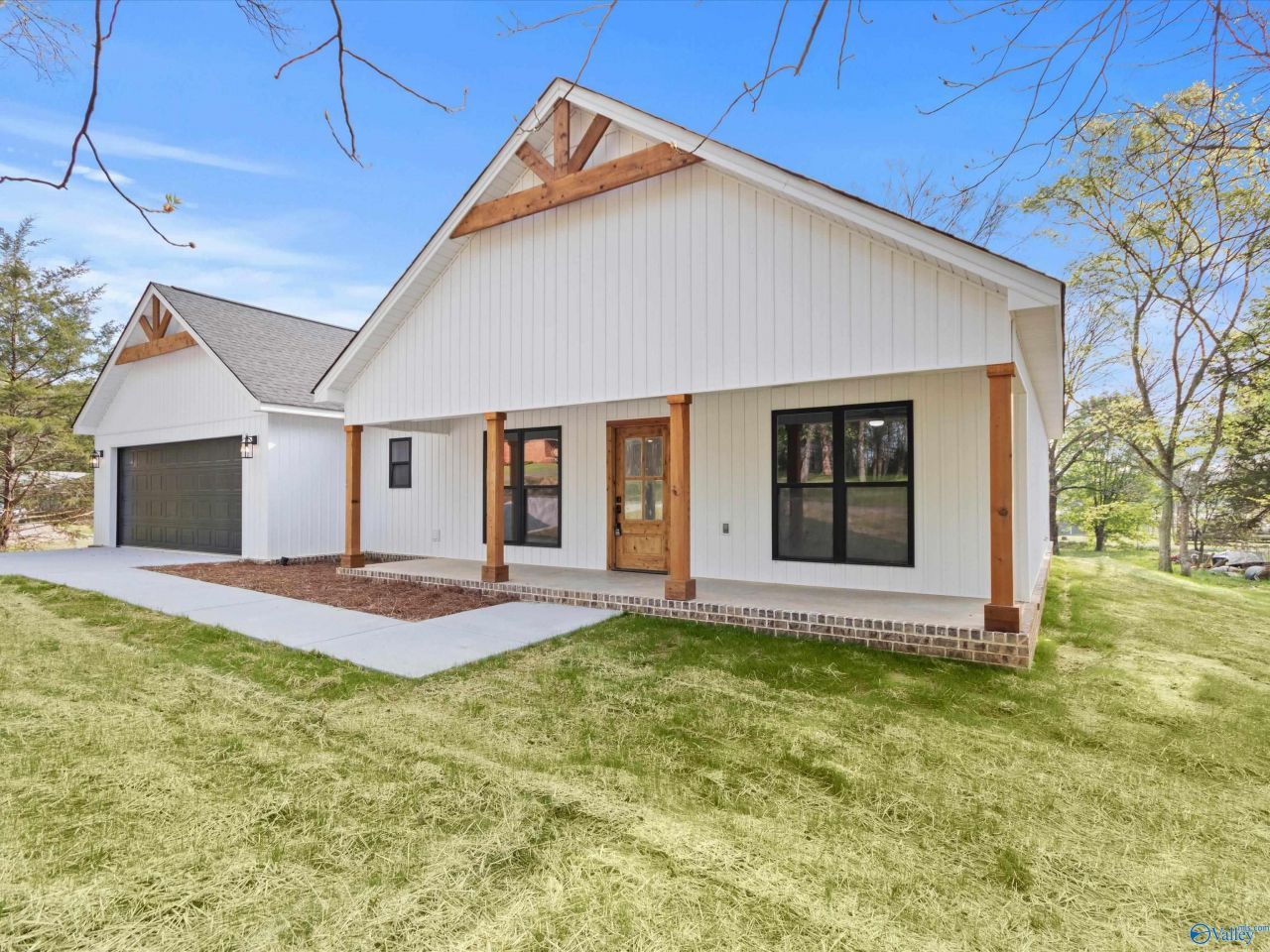 New construction offering 3 bedrooms, 2 bathrooms, and 1,618 square feet in a location convenient to Huntsville and just minutes from Lake Guntersville. Only 2 miles to Seibold Boat Ramp and 5 miles to City Harbor. This home features quality finishes throughout with an open layout, spacious living area, and a well designed kitchen with ample cabinet and counter space and island seating. The primary suite offers a comfortable layout with a well designed bathroom, while the additional bedrooms provide flexibility for guests or office space. The large garage offers space for vehicles and a boat, and the spacious backyard provides room to enjoy the outdoors.