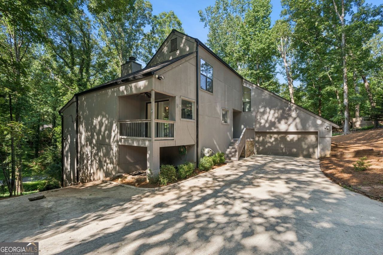 Cookie-cutter homes not your style? Discover this one-of-a-kind 5 bedroom, 3.5 bathroom home in the highly desirable Hidden Harbor swim and tennis community, just moments from Lake Lanier. Enjoy the dramatic two story great room with a stunning brick fireplace that sets the stage for cozy gatherings or lively entertaining. The spacious kitchen includes an eat-in area overlooking the large living and dining rooms, creating the perfect layout for everyday living or hosting guests. The main level master suite features a private balcony and a beautifully appointed bathroom with a shower, dual vanity, and his and hers closets. Upstairs, you'll find 3 additional bedrooms and a flexible loft space ideal for a reading nook, play area, or home office. The finished basement offers a generous entertainment area, a 5th bedroom, a full bath, extra storage, and walk-out access to the backyard. Sliding glass doors throughout the home open to balconies and covered porches, all overlooking a serene, wooded backyard, ideal for a large family craving comfort and charm. Home has been freshly painted throughout with all new carpets, making this beauty move in ready! Conveniently located near Flowery Branch and Gainesville, you'll have endless options for shopping, dining, and recreation, with Lake Lanier right around the corner for all your favorite water activities.