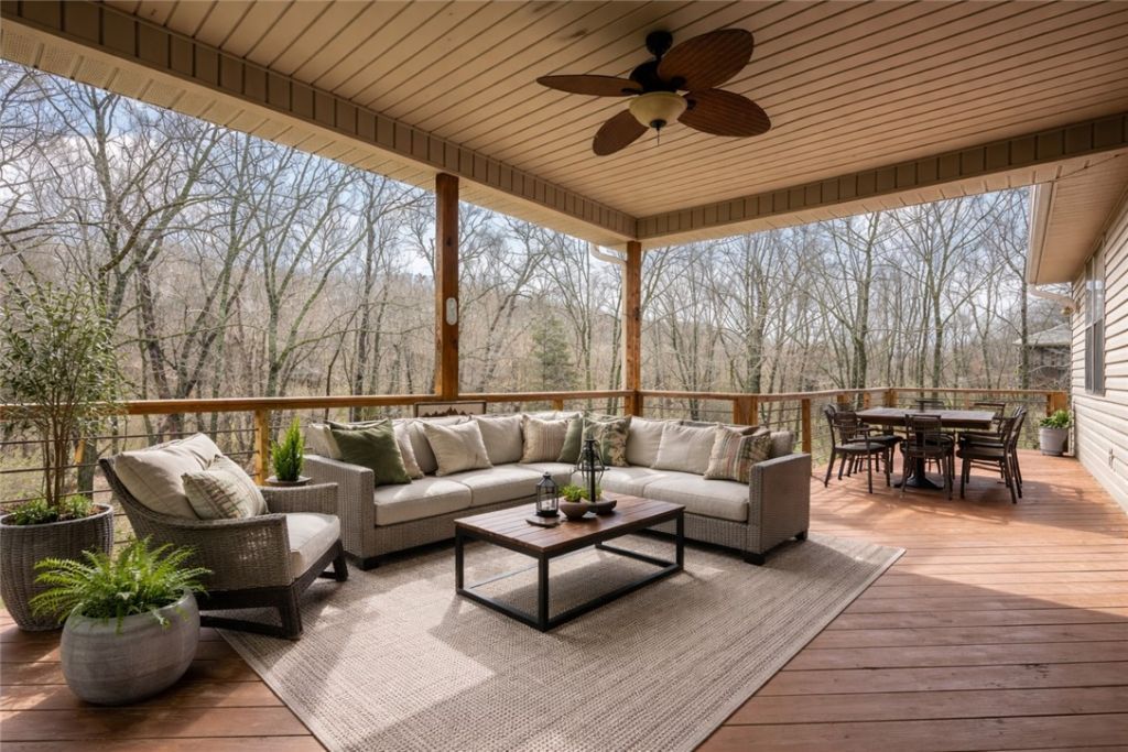Located in one of Bella Vista's most sought after outdoor corridors, this home offers direct access to the Snowbird section of the Back 40 Trail system just behind the property. Enjoy quick access to the golf course, Razorback Greenway, and nearby community amenities including a pool, playground, pickleball courts, golf, and a clubhouse, creating a true hub for active living.The flexible floor plan features three bedrooms on the main level, an eat in kitchen, and a formal dining space that can easily serve as a home office. The walk out basement expands the living space with a large bonus room ideal for a gym, workshop, playroom, or media room, along with a fourth bedroom and ensuite bath.Covered decks overlook a large, flat backyard surrounded by mature trees, offering wooded privacy, great curb appeal, and a peaceful bike friendly setting with direct trail access just steps away. SELLER IS OFFERING A $10,000 UPDATE ALLOWANCE.