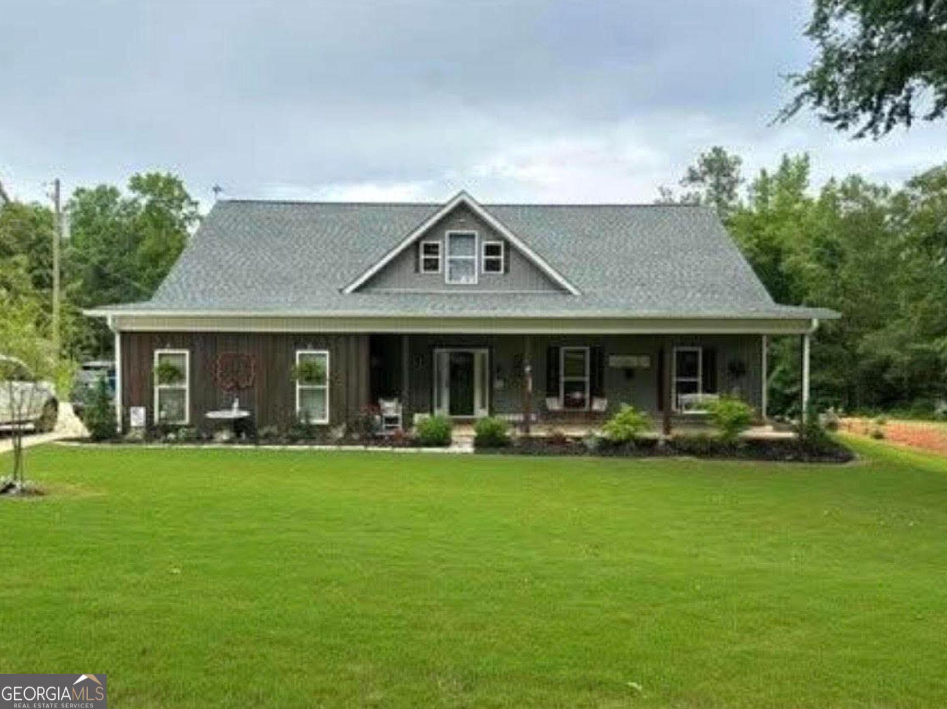 Do you love the Barndominium Style Home ? You have to see this one... very similar to a Barndo and Giving off those hobby farm vibes ...Chickens, Goats, Garden ? This home is located in the Ag district and a perfect location for your Mini Farm. The minute you pull in to this driveway you will know this has to be one of the most adorable Homes you have ever seen! Beautifully thought out design. One Level, Handicap Accessible. Built in 2023, One owner, well loved Ranch on 1.5 acres with NO HOA. Features three bedrooms, two bathrooms, split bedroom plan, large open living room, kitchen with stainless appliances, an island and solid surface counter tops. The owners suite has a separate tub and a large walk in tile shower, dual vanity, tile flooring. From the dining/breakfast area French Doors lead to a spacious covered patio, a solar shower, a partial fenced in backyard which is great for the little ones to play or if you have puppies, it allows them room to roam and play. The attic leaves a possibility for room to grow. Large laundry room with wall of cabinets and counter space. You will find plenty of storage for your mower and outdoor tools with a storage / tool room. Call and set up your appointment to see before this one is snapped up ! Since purchased the owner has put in new cement driveway, sod in front and back yards, fence and added a storage addition to the home. 40 minutes to I-85 Lagrange, 15 minutes to Wedowee, 45 minutes to I-20 and less than 5 minutes to Walmart