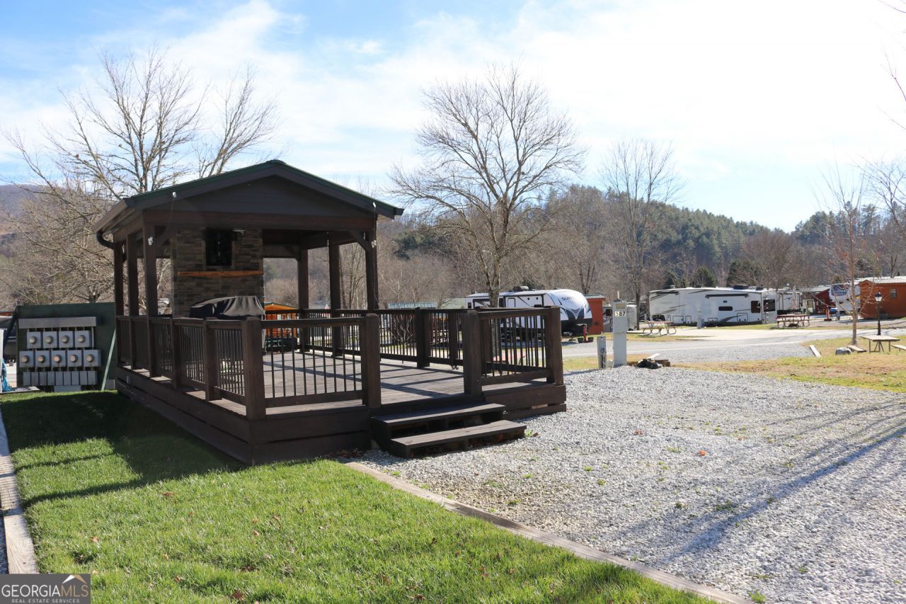 The ultimate Entertainment Hub in Dillard, GA. This improved lot features a massive 12x25 Covered Pavilion & Open Deck, custom wired for TV and Sports entertainment. Level, gravel pad ready for Class A Motorcoaches, Super Cs, and 5th Wheels. Located in the heart of the Great Smoky Mountains, just south of the NC border. Bundled with adjacent Lot 579 which features a Finished 12x10 Casita Studio with Luxury Vinyl Plank (LVP) flooring, finished walls, insulation, and electricity. Ideal for a mountain home office, bunkhouse, or storage. ****EASY Owner financing available****