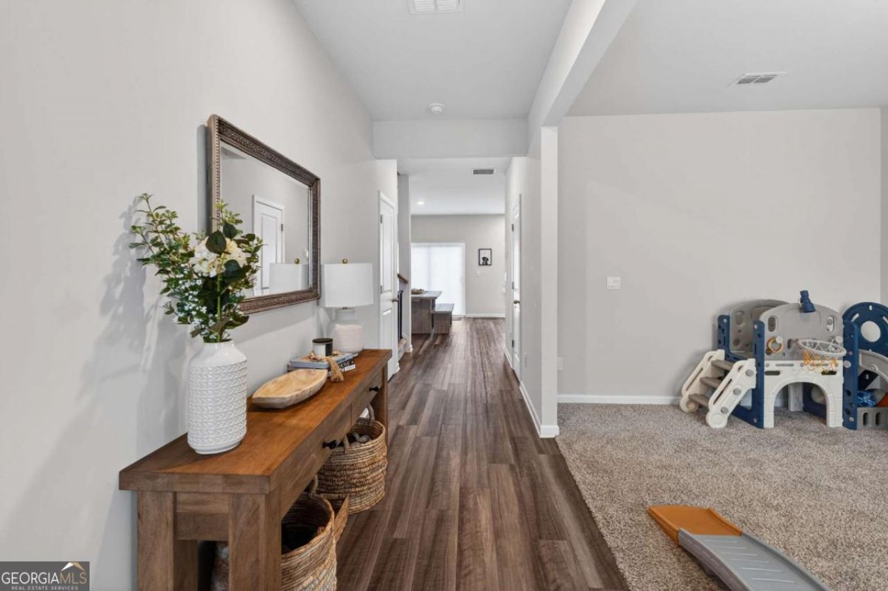 Welcome home to this nearly new home in a sought-after swim and playground community! This 4-bedroom, 2.5-bathroom residence offers a great blend of style with space. The floor plan includes an oversized laundry room and a formal dining room that can also serve as a home office/flex space. The chef's kitchen features beautiful cabinetry, granite countertops, crisp backsplash, and a design that opens into the breakfast area with a fireside family room. Oversized closets throughout create ample storage, while the inviting rocking chair front porch adds charm. In addition, the large fenced backyard make both places perfect spots to relax and unwind! Upstairs, you will find separate secondary bedrooms along either a large primary suite with a sitting room. Come see all the Union Grove has to offer! You will enjoy close proximity to shopping, dining, Chateau Elan and Lake Lanier, plus the convenient access to I-85 and I-985.