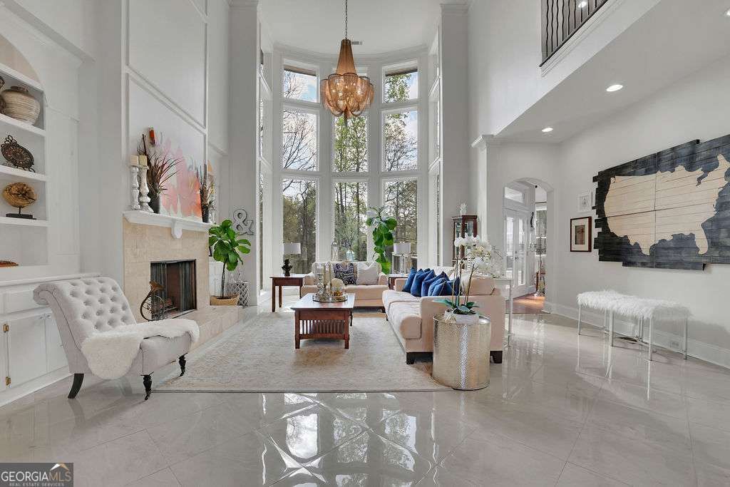 Meticulously maintained and presented in pristine condition, this fully renovated one-acre estate offers an exceptional blend of refined living, grand scale, and thoughtfully designed multigenerational flexibility. Every detail has been carefully curated, creating a home that feels both sophisticated and effortlessly livable. A dramatic two story entry sets the tone, unfolding into expansive living spaces filled with natural light, soaring ceilings, and rich interior detail. Five fireplaces add warmth and presence throughout, while the elegant step-up formal dining room creates a refined setting for entertaining. Designer finishes, custom built-ins, and elevated craftsmanship define every space, and a sculptural spiral staircase serves as a stunning centerpiece. The kitchen is both beautiful and functional, showcasing quartzite countertops, a generous island, stainless steel appliances, and abundant workspace, all seamlessly connected to formal and casual living areas for effortless flow. The main level primary suite offers a true retreat, complete with dual fireplaces and a spa inspired bath designed to impress. Each level of the home provides its own private living experience, including a true primary suite on every floor- an ideal layout for extended family or guests. The fully finished terrace level is designed for exceptional living and entertaining, complete with coffered ceilings, two bedrooms, two full bathrooms, a full bar, wine cellar, dining area, game room, exercise room, and a dedicated home theater. Outdoor living is equally compelling, with a sprawling deck and patio overlooking serene, private surroundings, perfect for both intimate gatherings and large-scale entertaining. Thoughtful upgrades, including a tankless water heater and laundry on all three levels, enhance everyday convenience. With no HOA and a prime location just moments from the Silver Comet Trail, Historic Covered Bridge, and nearby parks and entertainment, this home delivers the rarest combination of luxury, space, and lifestyle flexibility.