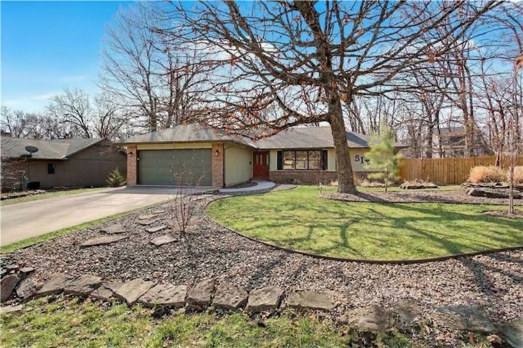 Welcome to this private, single level home built by a popular builder in a great location! Right down the street is Branchwood Rec Center, featuring a gym, tennis, pickleball, disc golf, walking trail, playground, and more! You'll be less than 5 minutes from I-49, Highlands Golf Course & Pub, Loch Lomond lake, and a dog park. The home offers 3 beds, 2 full baths, and a large sunroom overlooking the serene wooded backyard. The back is loaded with entertainment space, featuring ample deck spaces on each side of the enclosed sunroom, and a hot tub to boot. Inside you will find hard-surface floors throughout except 1 bedroom with carpet. The massive primary shower was remodeled with onyx stone surround, glass doors and easy accessibility. The huge living room features tall ceilings and a wood burning fireplace. Roof, fence, and deck were all replaced in 2022. Fridge/washer/dryer may convey with acceptable offer. Home warranty included! 2 Additional lots behind home may be purchased as well! Contact agent for pricing.