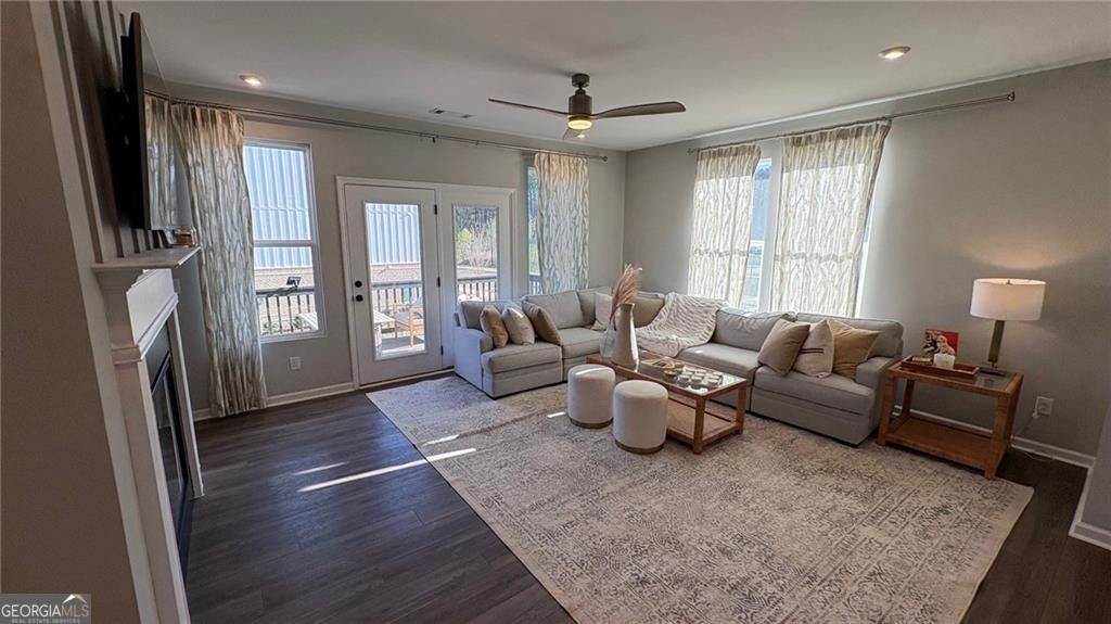 This beautifully appointed model townhome offers the perfect blend of modern design, premium upgrades, and nearly new construction-less than two years old and meticulously maintained. Located near Downtown Woodstock and Downtown Acworth! Very convenient to shops, restaurants and charming downtown areas! As the former model, this home is loaded with designer features, including custom window treatments, upgraded board and batten accent walls, and a thoughtfully curated lighting package throughout. The stylish furnishings may also be included, providing a turnkey opportunity for buyers seeking a move-in-ready home. The spacious three-level layout includes a versatile lower-level flex space and a two-car garage with an upgraded brick step entry. The main living area showcases a modern fireplace and opens to a large deck, complete with solar cafe lights, creating an inviting space for entertaining or relaxing outdoors. At the heart of the home is a gourmet kitchen featuring a large center island, quartz countertops, and a full suite of upgraded stainless steel appliances, including the refrigerator. Upstairs, the third level offers three bedrooms and two full baths, along with the convenience of a laundry area located on the same level-complete with a front-loading washer and dryer included in the sale. An additional two half baths are thoughtfully placed on the lower and main levels for guests. Situated as a desirable end unit, the home enjoys a large side yard, providing added privacy and outdoor space not often found in townhome living. Built as an EarthCraft-certified home, this property emphasizes energy efficiency and quality construction. The seller is relocating, presenting a unique opportunity to own a highly upgraded model home in exceptional condition, turn-key with the potential to have gorgeous MODEL home furniture included!