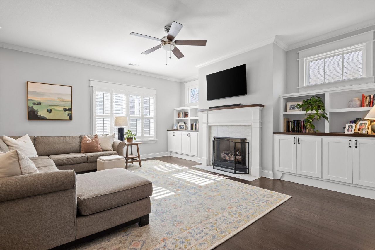 Welcome to easy living in one of Hixson's most connected and community-oriented neighborhoods.Located in the sought-after Amberbrook Garden subdivision, this beautifully maintained home offers the perfect blend of open living space, thoughtful upgrades, and a lifestyle buyers love--sidewalk strolls, everyone playing outside, and everyday conveniences just minutes (or even a short walk) away.Step inside to a warm and inviting main level designed for both everyday living and entertaining. The open floor plan features hardwood floors, tray ceilings, and a cozy gas fireplace framed by custom built-in shelving and cabinetry. The dining room has been thoughtfully converted into a functional home office with built-in desk space--ideal for remote work or homework time.The kitchen flows seamlessly into the living area and offers granite countertops, stainless steel appliances, a large pantry, and a spacious island with seating for three--perfect for casual meals, morning coffee, or gathering with friends and family.Upstairs, the oversized primary suite provides a true retreat with a private sitting area, an impressive 8x13 walk-in closet, and a spa-inspired bath featuring double vanities and a frameless glass tiled shower. Two additional guest bedrooms offer generous closet space, while the 15x11 bonus room provides flexible space for a playroom, media room, or second living area. The laundry room is conveniently located on the same level as the bedrooms.Outdoor living is just as inviting. Relax on the screened-in porch with a ceiling fan and TV setup while overlooking the fenced backyard that backs up to undeveloped green space--providing both privacy and a peaceful wooded backdrop. The yard is perfect for everyone, pets, and weekend gatherings.Additional highlights include plantation blinds throughout, a mudroom and half bath on the main level, and a two-car garage with ample storage. Amberbrook Garden is a sidewalk-lined neighborhood with streetlights and a welcoming community feel--where neighbors walk dogs, everyone plays outside, and everything you need is close by. Enjoy a 7-minute walk to Publix, nearby restaurants within walking distance, quick access to Northgate Mall, and easy proximity to Lake Chickamauga and downtown Chattanooga.Move-in ready and perfectly positioned for convenience, comfort, and community--this is the Hixson home you've been waiting for.