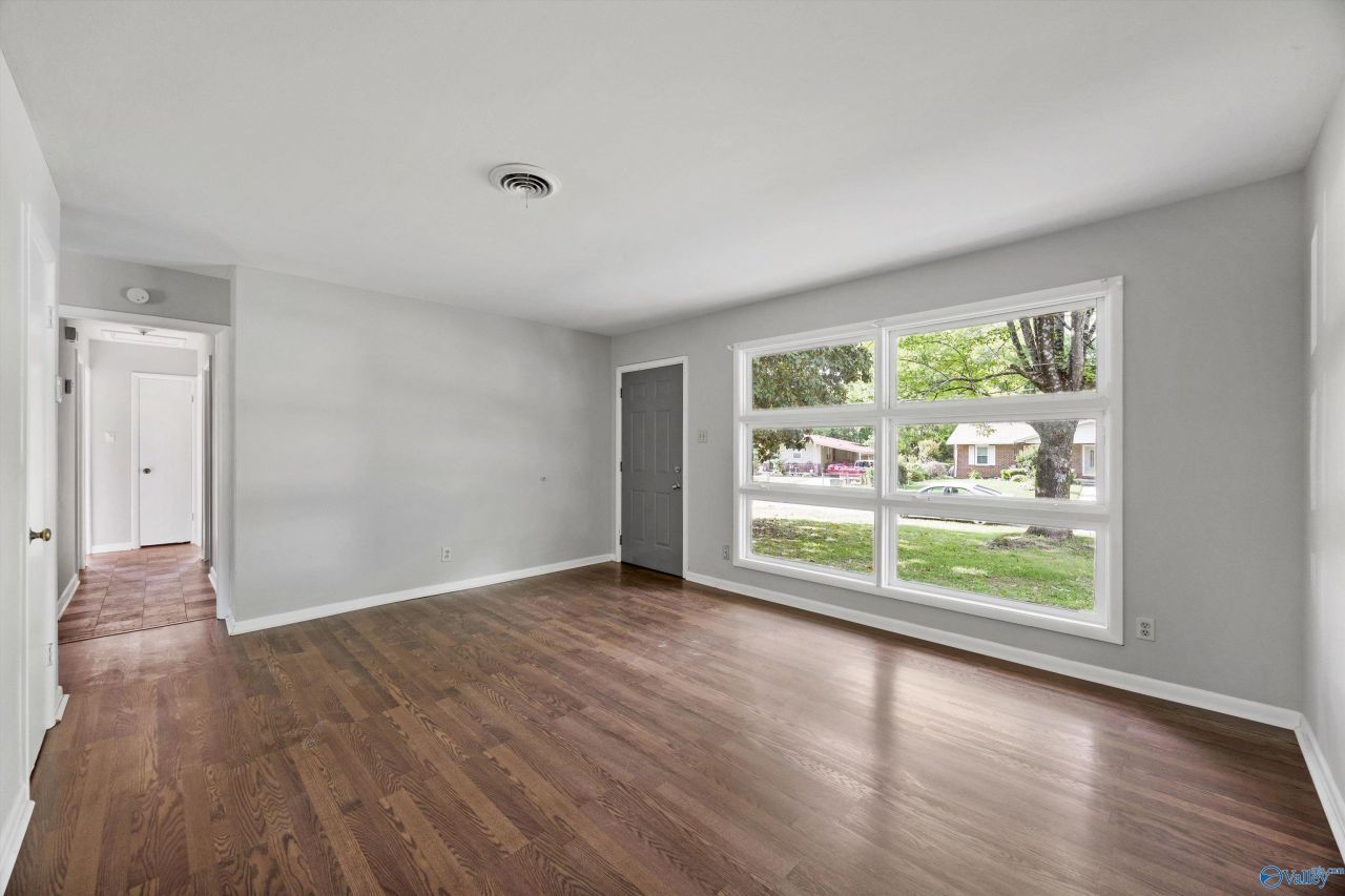 Charming and move-in ready, this quaint all-brick, single-level home is ideally located just minutes from downtown Huntsville. Fresh paint and refinished hardwoods complement a bright, updated kitchen with custom cabinets, new countertops, and modern lighting. The home offers 3 bedrooms and 2 baths, including a private primary suite with a ¾ bath, plus a flex family room and a refreshed laundry space. Enjoy a peaceful, private backyard with mature trees, a large patio, and a new privacy fence. Brand-new roof with added gutters. Seller is providing an Old Republic Home Protection home warranty covering major systems, appliances, plumbing, and more for that buyers peace of mind!