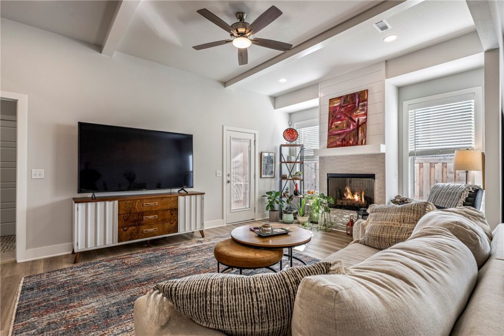 Sunlit interiors & Resort amenities w/i 15 minutes to: XNA Airport, Walmart's new Home Office, Mercy Hosp., DT Bentonville & Walmart AMP. Here you're at the center of NWA without the chaos. Open-concept that is flooded with natural light, making every room feel expansive and alive. The kitchen features KitchenAid Prof. Series Appliances & Fridge bringing a chef's touch to everyday living. A rear-entry garage keeps the streetscape clean and picture-perfect. The covered back porch is your personal sunrise spot every single morning. The common area next door means no one can ever build there, your privacy and your views are locked in for good. Small yard, Low maintenance, More time for living. In the evening, stroll through the landscaped common areas with abundant decorative lighting. Aurora's amenities: 2 pools (1 adults-only), pickleball, open-air clubhouse, walking trails, a dog park, and picnic areas designed for real outdoor living. This is one will surely steal your heart!