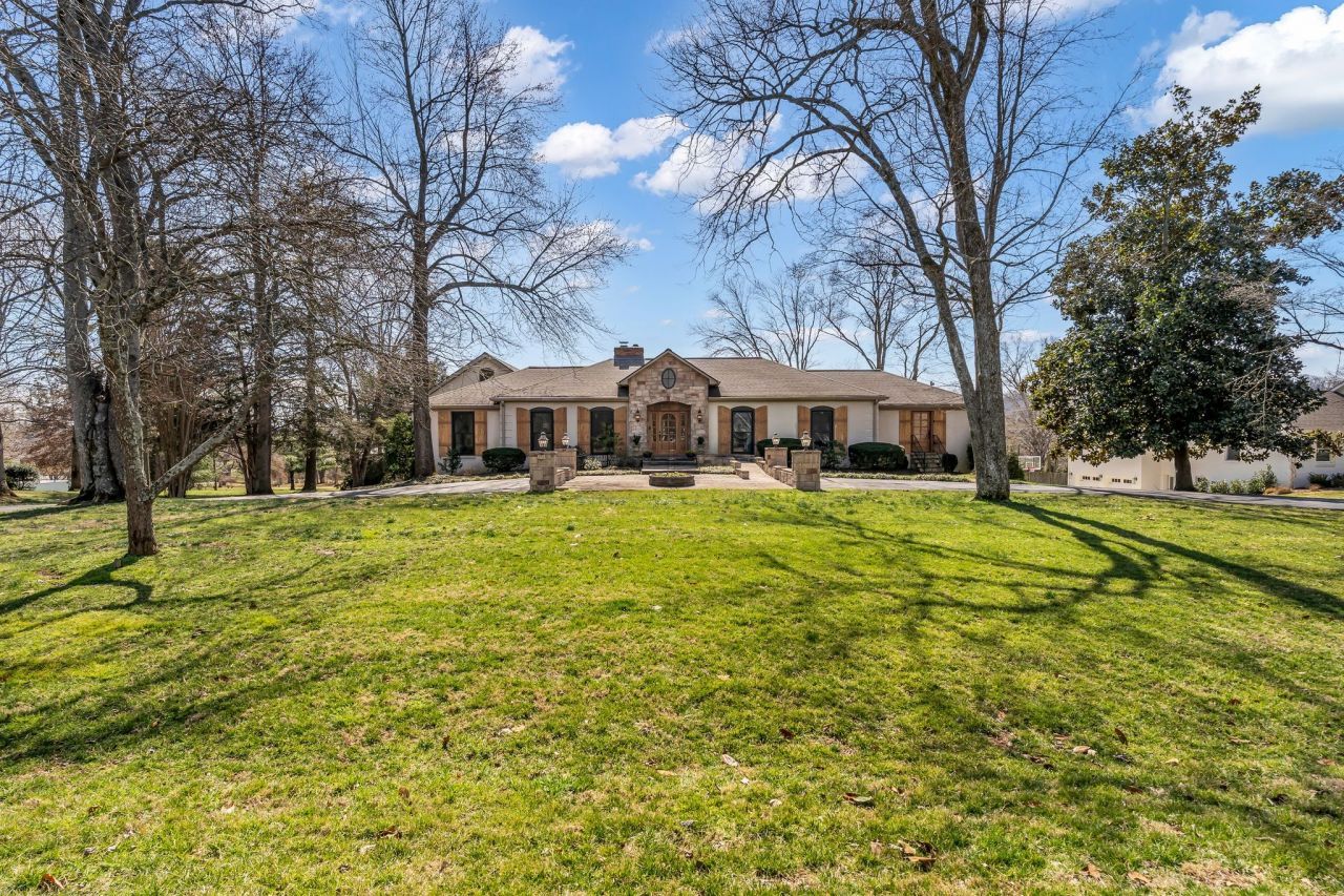 Located in the highly sought-after neighborhood of River Oaks in Brentwood, this exceptional home offers convenient access to top-rated schools including Brentwood Middle School, Brentwood High School, and the prestigious Brentwood Academy. Nestled on a quiet cul-de-sac, this beautifully designed one-level residence exudes timeless country-French charm and undeniable curb appeal. A picturesque stone pathway leads to a grand, tiered entrance framed by four stately columns and classic carriage lanterns. The handsome front door with sidelights is set against a covered stone fa?ade, crowned by an elegant oval window that completes the striking entry. A thoughtfully designed renovation in 2006 expanded the home with a new wing featuring a spacious keeping room, utility room, pantry, private teen suite upstairs, and a luxurious primary suite. The kitchen was also remodeled at that time, blending seamlessly with the home's original character making this a chef's kitchen. Subsequent updates provide peace of mind and modern convenience, including new windows (2018), a new roof (2020), main HVAC replacement (2023), and an expanded back porch with a beautifully crafted stone patio (2021). The covered porch is equipped with motorized screens that operate independently or in sync-perfect for year-round enjoyment. Continuing the commitment to quality, the irrigation system was installed in 2025, the interior was freshly painted and new carpet installed in primary br.2026, brand-new bath was completed last month. Additional highlights include hardwood floors, skylights, 2 fireplaces, a tankless water heater plus an additional water heater in the lower level, and abundant storage throughout. The fully finished lower level offers incredible flexibility with a bedroom, kitchen, family room, hobby room, and private office,ideal for guests, &generational living,Hobby R.11x10-Workout18x10 Special feature a ELEVATOR-For those looking for projects-substantial workshop & oversized garage