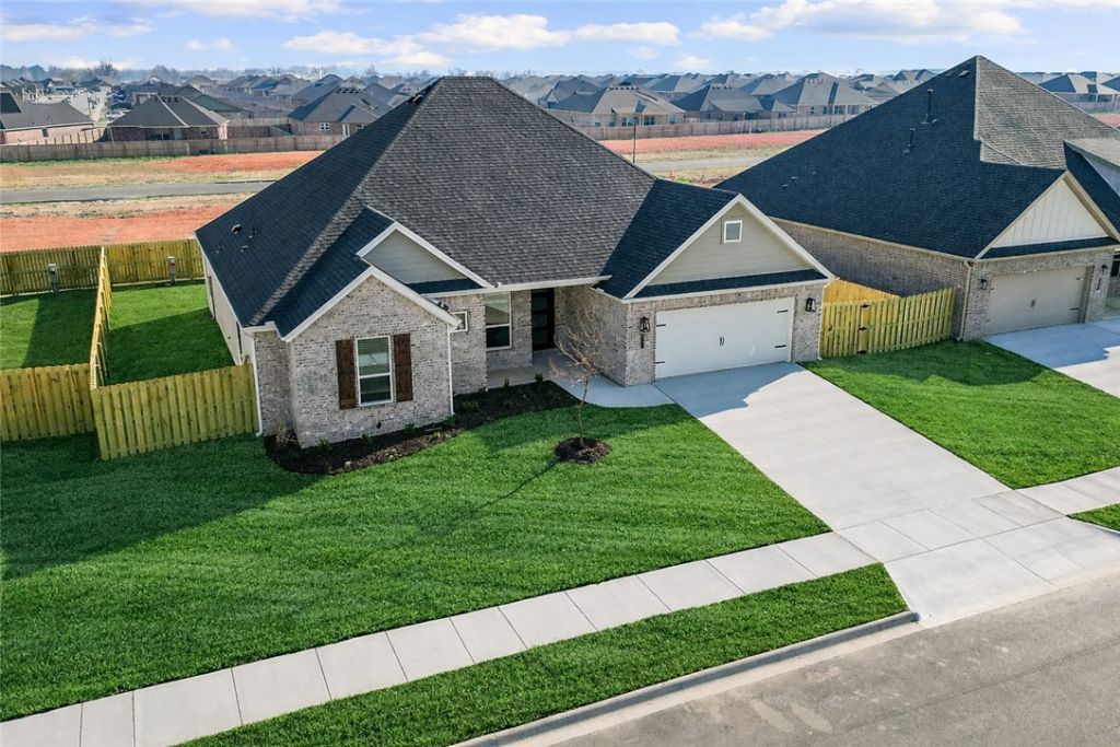 Bariloche sits less than 5 miles from I-49, offering convenient access to everything Northwest Arkansas has to offer.The Juniper floor plan features 2,158 square feet of thoughtfully designed one-story living; the open-concept layout seamlessly connects the living, dining, and kitchen areas?perfect for both everyday living and entertaining.Durable and stylish LVP flooring runs throughout the main living areas, kitchen, and hallways, combining beauty with easy maintenance. The spacious primary suite offers a private retreat and includes the added convenience of direct access to the laundry room.Bathrooms feature framed mirrors for a designer-quality finish, along with cabinets over the toilets to provide extra storage space and functionality. For a limited time, Lower your interest rate with $7,500 from the builder + $2,500 appliance allowance + up to 5k in closing costs from select lenders. For a total of up to 15K with lender incentives. Fence, blinds, and gutters are all included.
