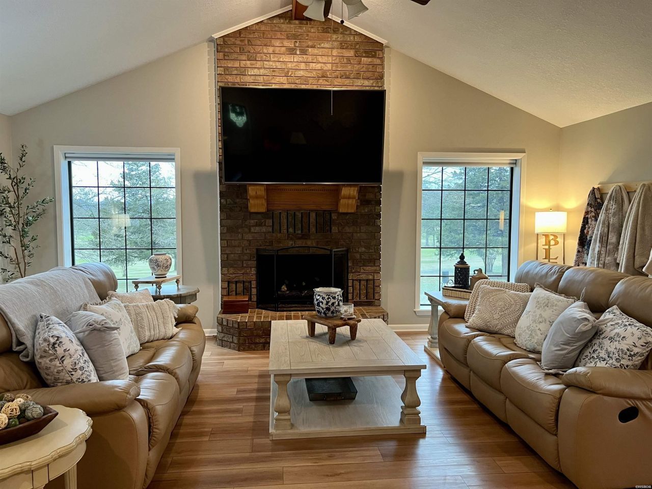 Welcome to 65 Golf Course Rd in Glenwood, a spacious golf-course home designed with incredible storage and functionality in mind. Where comfort, space, and scenic views come together on nearly an acre along the golf course. This spacious brick home offer approximately 4,600 sq ft. of living space with 4 bedrooms, 3 baths, with cinema or game room. 2 separate car garages with a large shop, making it ideal for entertaining or enjoying peaceful everyday living. Step inside to find a generous living area, a cozy fireplace, and large windows that brings in natural light and beautiful golf-course views. Sunroom perfect for relaxing mornings with coffee or unwinding in the evenings while overlooking the greens. Outside the property offers mature trees, a large deck, and plenty of room to host friends, gardening, or simply enjoy the quiet surroundings. No Fees, unrestricted, or Zoning restrictions.