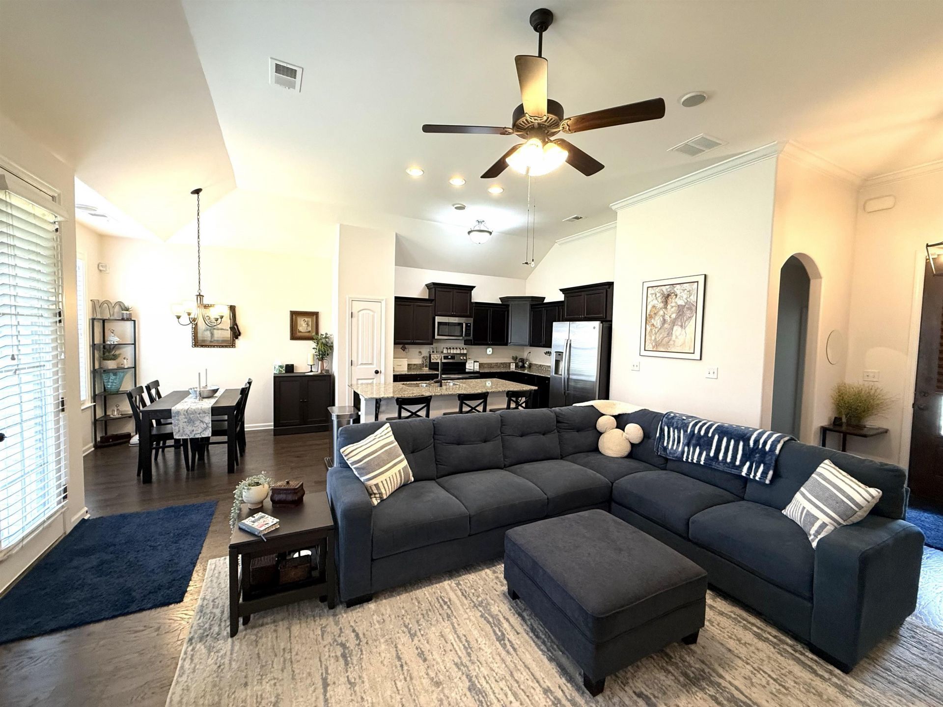 Welcome to this charming 3 bedroom 2 full bath, Regency home built in 2018 with an open floor plan, a cozy fireplace for those chilly evenings. Kitchen is equipped with all stainless steel appliances. Granite countertops with eat in bar. Primary bathroom has double sinks with granite, Garden tub, separate shower. Walk in Closet. Guest Bedrooms carpet and shared bathroom with Tile floors and tub/shower, granite countertops. Hardwood floors in family room, kitchen, foyer. Tall ceilings & lots of closet space. Window Blinds through out the house. In 2022 New carpet install in all bedrooms, & Fresh interior neutral color paint scheme gives the home a modern and clean feel. Step outside to the covered patio, ideal for outdoor entertaining. (The fenced in backyard belongs to the adjoining neighbors.) Fresh mulch in flower bed. This property is a must for those seeking a comfortable and stylish living environment. Low Fayette County Taxes.