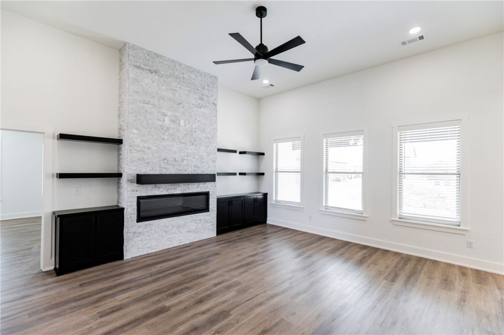 Welcome to this stunning all-brick new construction home in Walnut Grove Estates. This Bentonville subdivision is located just minutes from Vaughn Elementary, the airport, groceries, gas, & more! It boasts numerous high-end features and extras. Inside, you'll find a stone fireplace with built-in shelves on both sides, a spacious pantry, an eat-in kitchen with stainless steel appliances, and a master bathroom featuring a fully tiled walk-in shower with a rain head, dual vanities, & a soaker tub. The property also includes 2-inch faux wood white blinds, gutters, and a privacy fence. Neighborhood pool & other POA amenities coming soon.