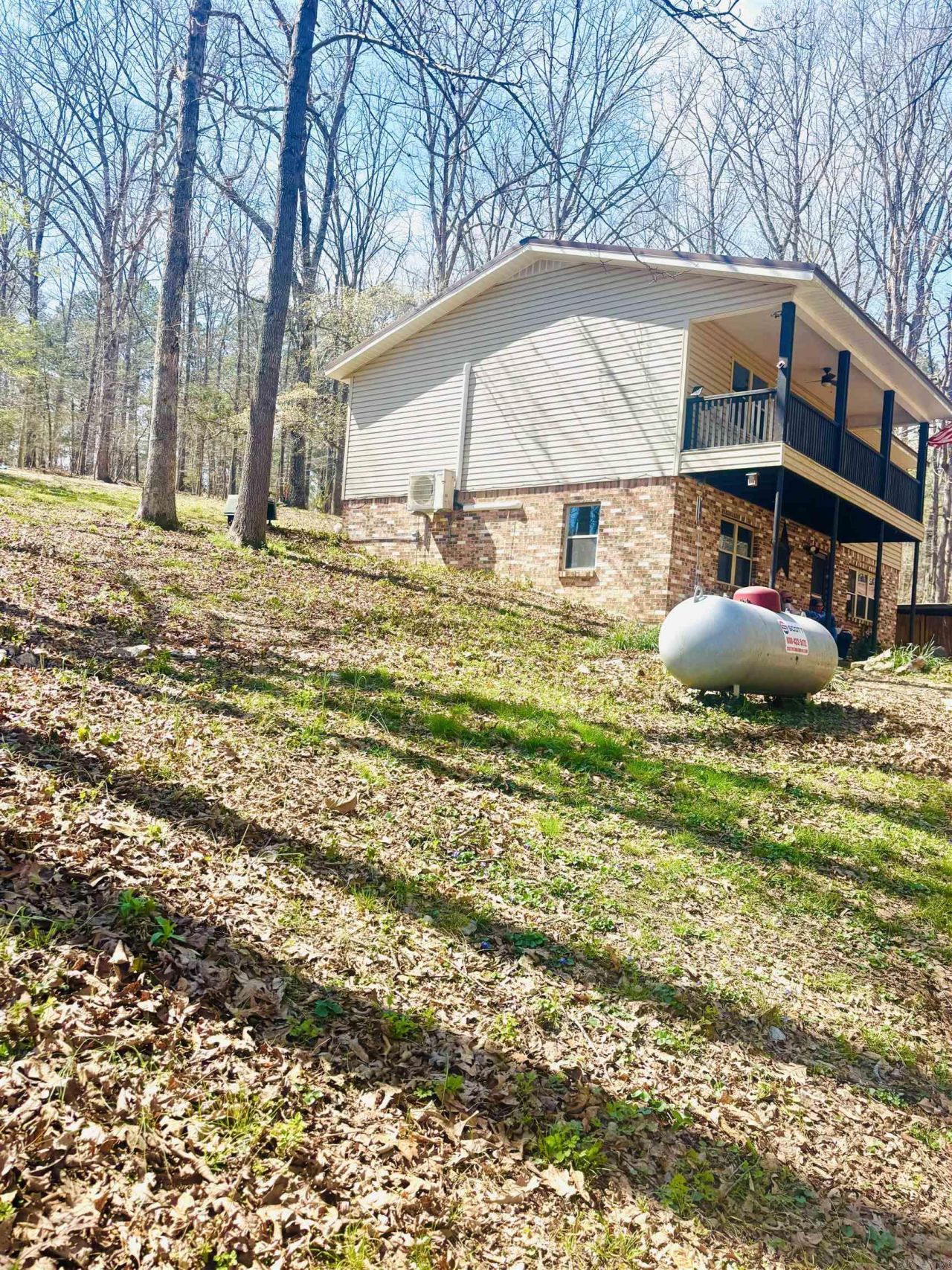 Rare find! This beautiful two-story home offers over 2000 sq ft sitting on over 3 acres, fronts paved Roasting Ear Road in Fifty-Six, and joins the Ozark National Forest on 2 sides!!! That's right, the backyard of this home, to enjoy hunting, hiking, or nature watching, expands to the boundaries of the Ozark National Forest with an abundance of deer, small game, and birds!!! Step onto the covered porch of the walkout basement into the front door to the living room/den with a wood burning stove and bookshelves, a half bath with space to convert to a full, pantry/closet under the stairs, and spacious updated kitchen/dining combo with quality cabinetry. Upstairs, the primary has a walk-in closet and room for a sitting or office area. A laundry room, 2 other bedrooms, and hall to a covered upper front deck. Updated full bath. The backdoor leads out to a private back deck with woodland/nature views. Detached 2 car garage. Shed. Call today!