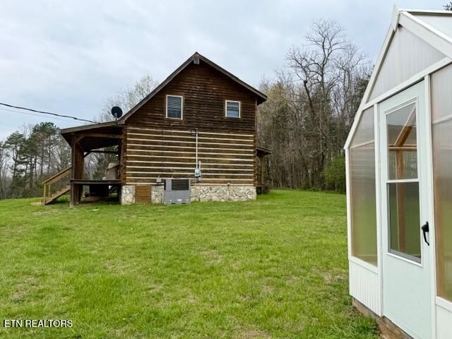 Cabin sitting on 3.35 cleared acres with 2 living areas, 2 bedrooms and 2 full baths (one of each on every level) with all the amenities (Fridge, Stove, Dishwasher, Washer and Dryer), Has two covered porches and a two bay garage (large enough for that RV). Deer and wildlife visit the property regularly and they want to meet you! Home has its own Greenhouse {20x8) and room for your animals or even a small farm, just minutes from Downtown Rogersville and close to the lake with complete privacy.