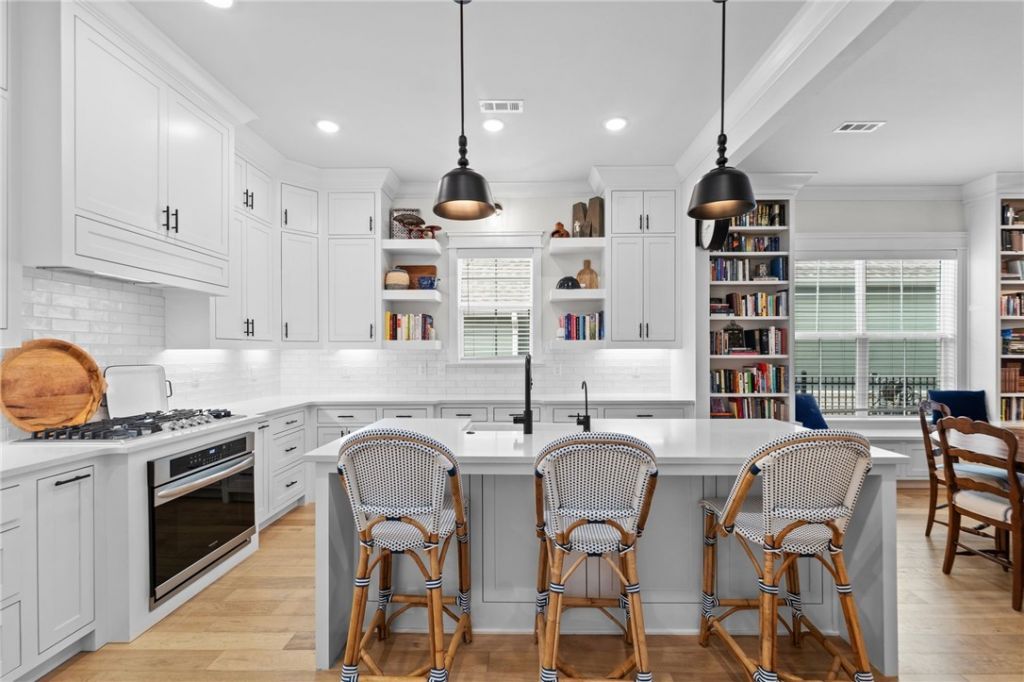 Welcome to this beautifully crafted custom home by Landmarc that blends spacious living with low-maintenance lifestyle. Featuring 10-ft ceilings & 8-ft doors downstairs, 9-ft ceilings upstairs, and large bedrooms, each with own private ensuite plus an additional powder bath. The kitchen offers extensive ceiling-height cabinetry & abundant storage. Custom upgrades add warmth, including built-in bookshelves, enhanced cabinetry, a dining room window seat, & an upgraded living room light fixture. A private office nook with a glass door & extended HVAC creates a perfect work-from-home space. Homeowners added wood floors in the master bedroom & updated tile in the primary bath, mudroom, powder bath, & laundry room. Enjoy a welcoming front porch neighborhood with seasonal events & weekly clubhouse gatherings. Nearby Shaw Family Park offers trails, playgrounds, pickleball/tennis courts, ball fields, dog parks, fitness area, splash pad and picnic shelters perfect for family outings! This one will go fast!
