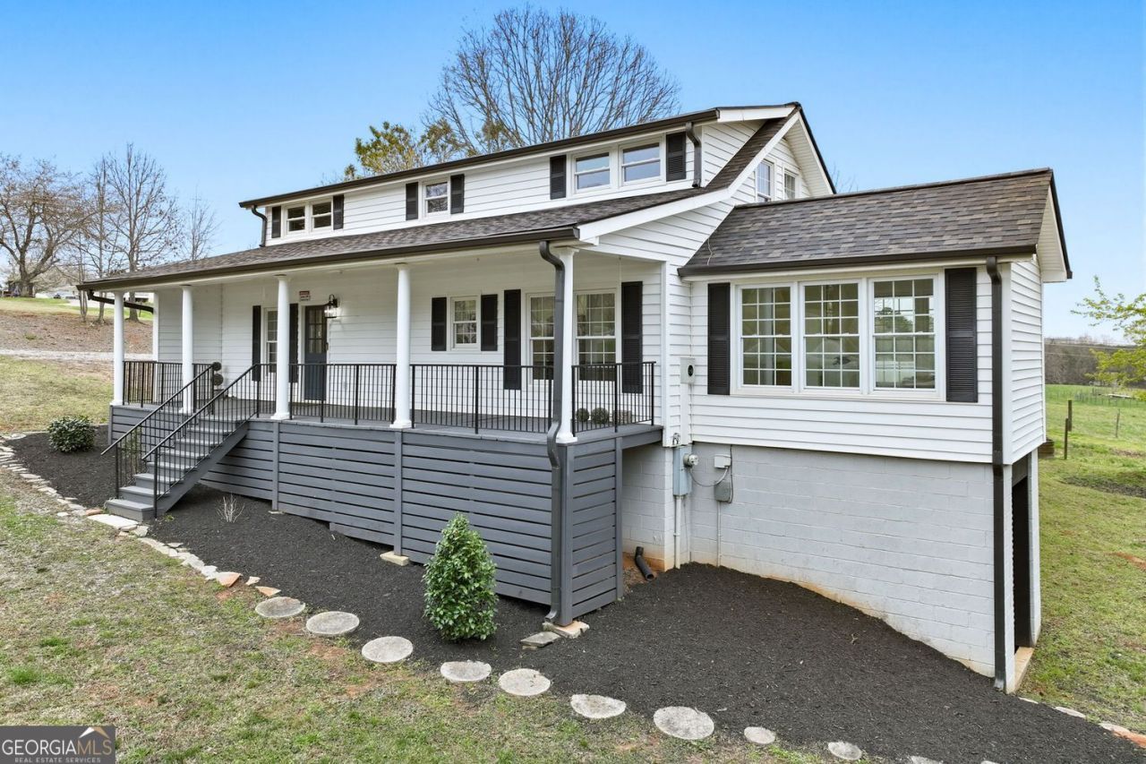*Assumable loan with a rate of 5.25% for qualified applicants.* Experience peaceful country living in this charming 3-bedroom, 2.5-bath home in North Hall. A classic rocking chair front porch welcomes you home and sets the tone for the inviting lifestyle this property offers, complete with beautiful views of the neighboring pasture. Recent updates include a new designer roof with a transferable warranty, as well as new seamless gutters and downspouts. As you enter the property, you'll also find a steel-framed barn with a brand-new metal roof, offering endless possibilities for storage, hobbies, or additional workspace. Inside, the open-concept floor plan is filled with natural light from oversized windows and features a spacious living and dining area designed for both everyday comfort and entertaining. Thoughtful details such as shiplap walls, exposed beams, and a sliding barn door add warmth and character throughout. The main level also includes a breakfast bar, dedicated office space, laundry room, and a private owner's suite. Upstairs, a cozy landing leads to two additional bedrooms and a full bath, creating a functional layout with room for everyone. Out back, the expansive deck is the perfect place to relax or entertain while enjoying the peaceful countryside setting. Located in a highly sought-after school district and just a short drive to the North Georgia mountains, this home offers a wonderful blend of comfort, style, and convenience.