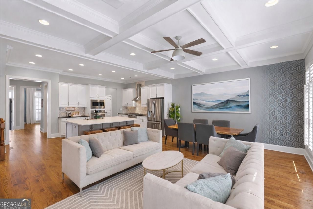 The Wow factor is real in this spectacular and huge Williamscraft townhouse in one of Sandy Springs' favorite gated pool communities! You'll fall in love with the gorgeous hardwoods, plantation shutters, a renovated chef's kitchen with massive quartz countertops, beautiful custom built-ins, coffered ceilings and carefully designed colors and finishes. Everything has been meticulously thought-out. A separate dining room big enough for any culinary affair, plus a private deck to boot. The oversized master sports a generous sitting area, tray ceiling, and large spa-like bath with equally large closet. All secondary beds include ensuite baths including the enormous top level loft, perfectly suited as a teen suite or home office, while terrace level works equally well as guest room or secondary living space complete with wet bar/wine cooler and storage! You can't beat the location of Glenridge Heights with it's pool, clubhouse, dog park, and fitness center; and directly next to favorites Sushi Nami, Blue Moon Pizza, Qdoba, Davinci's Donuts and more. Just 3 minutes to 400/285 and Pill Hill, 10 minutes to Chastain Park, and Perimeter Mall, there is nothing you won't love about living here!